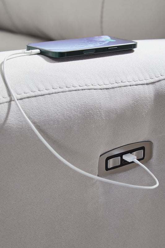 Social Pointe - Power Recliner / Adjustable Headrest - Pearl / Ash