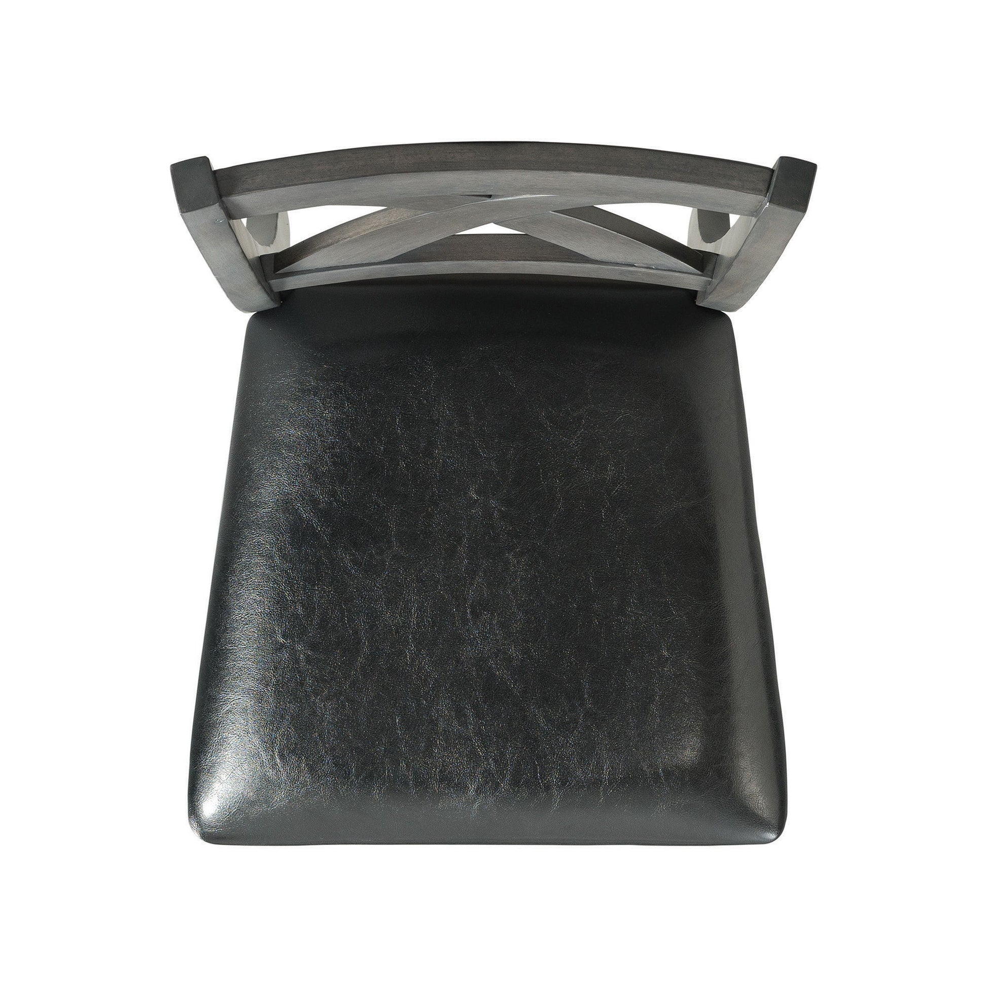 The Alex Standard Height Dining Set is the perfect addition to your dining room! This set includes a table and six side chairs. The rectangle table shape will easily fit in your dining room. The chairs feature an X-back design and the seats are upholstered in a faux leather fabric; adding extra flair to this set. The foam cushion seats will keep you comfortable during long dinners.