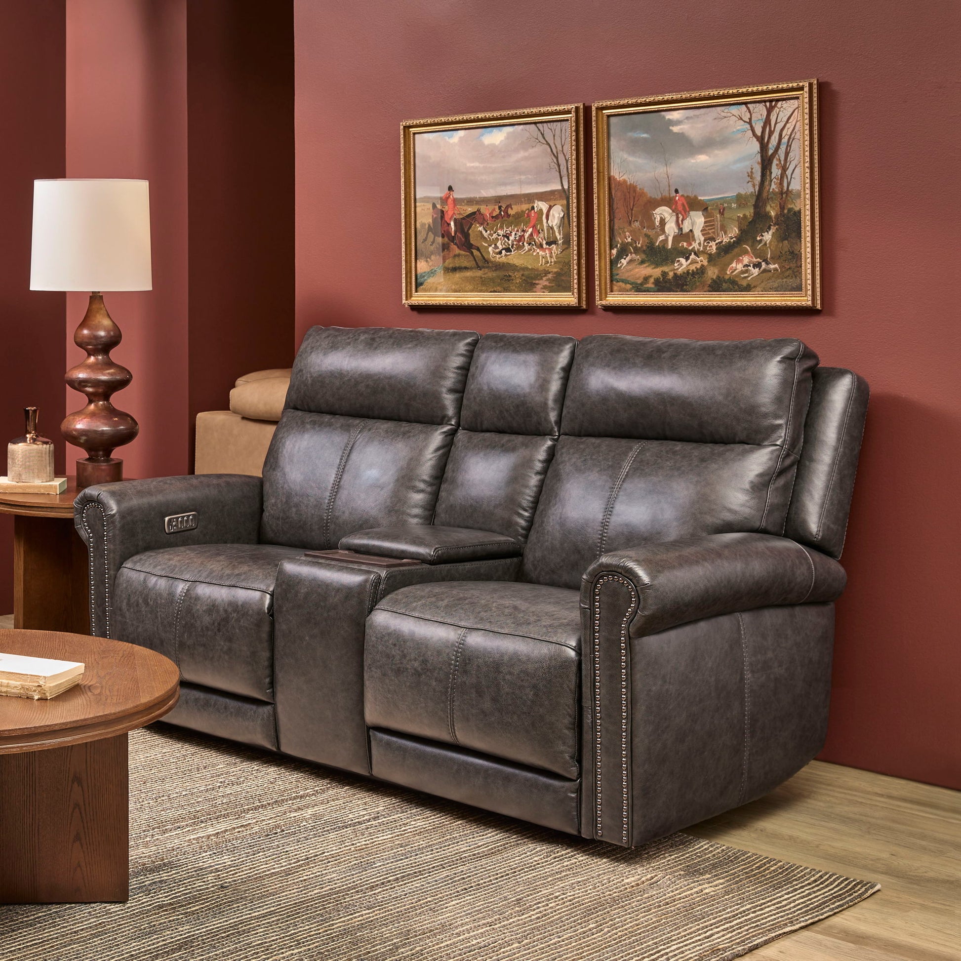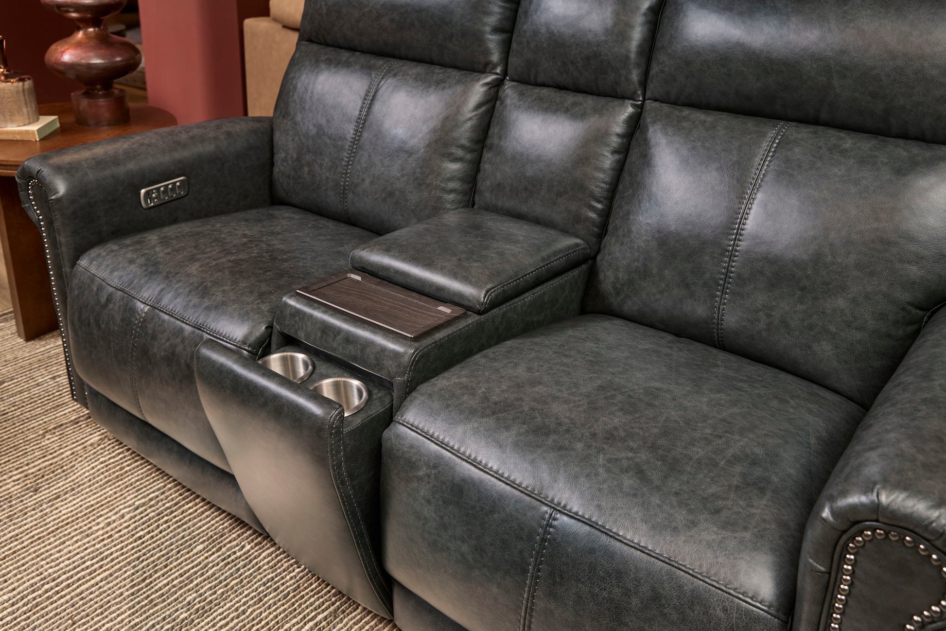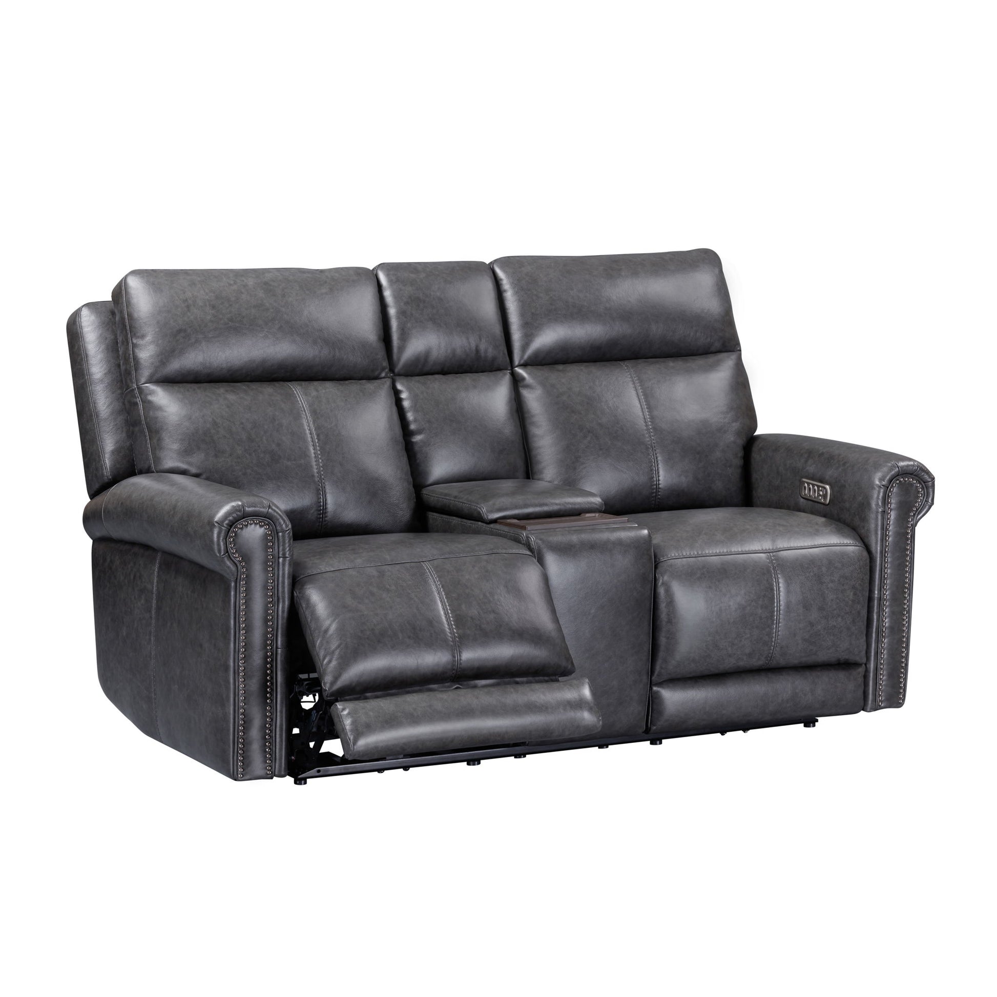 Alexander - Power Reclining Loveseat With Console, Power Headrest & Lumbar - Weathered Stone Gray