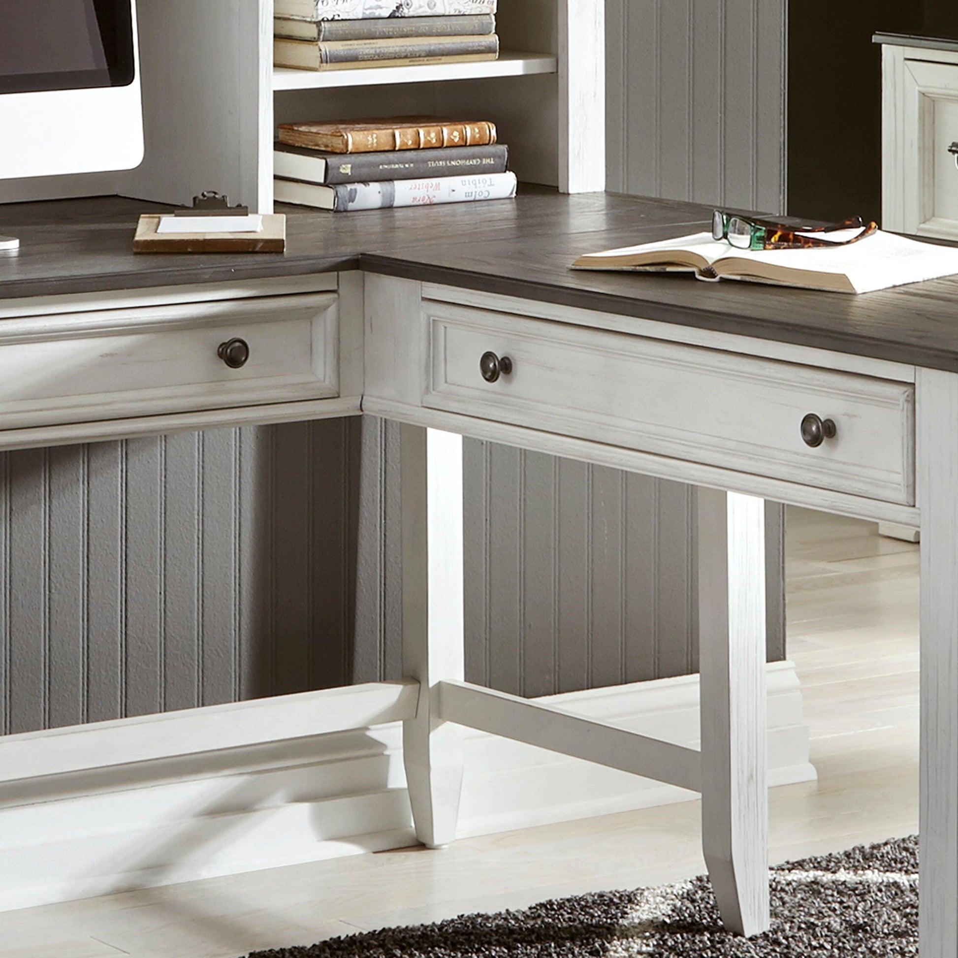 Feature one flip down keyboard tray, planked top with two rounded corner open shelves. Cannot stand alone. Pair with the writing desk to make a complete set.