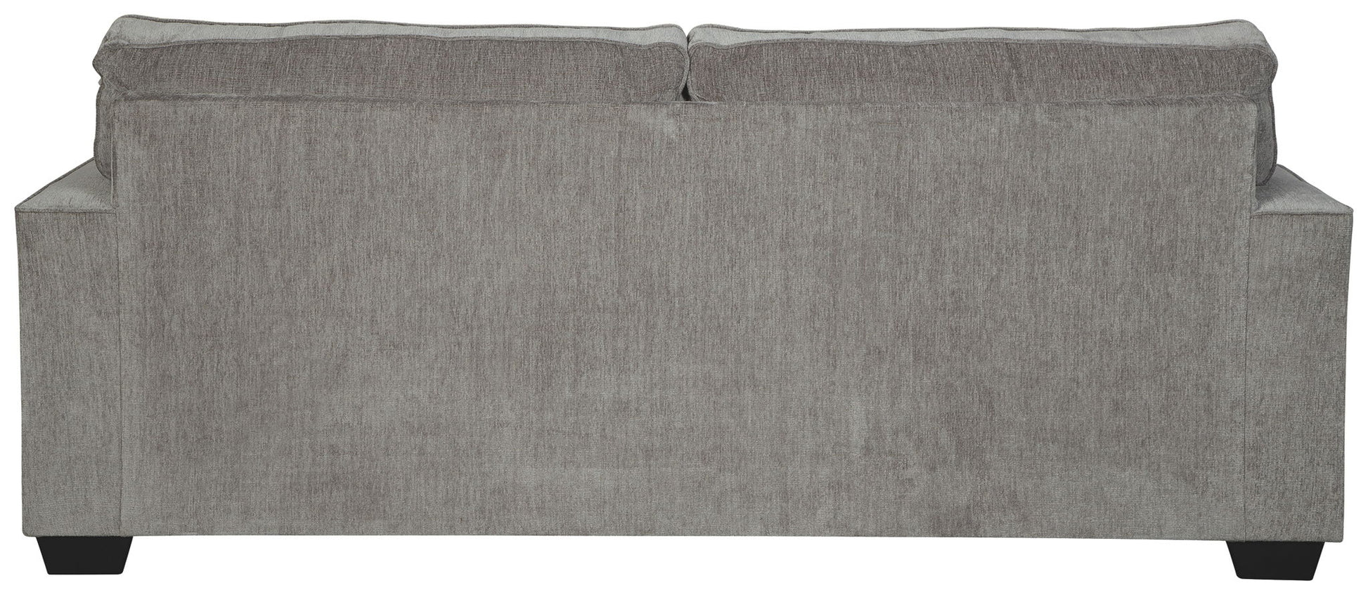 If style is the question, then this sofa sleeper is the answer. Sporting clean lines and sleek track arms, the decidedly contemporary profile is enhanced with plump cushioning and a chenille-feel upholstery, so pleasing to the touch. Sure to play well with so many color schemes, this sofa sleeper in slate gray includes a pair of understated floral pattern pillows for fashionably fresh appeal. Pull-out queen mattress in quality memory foam comfortably accommodates overnight guests.