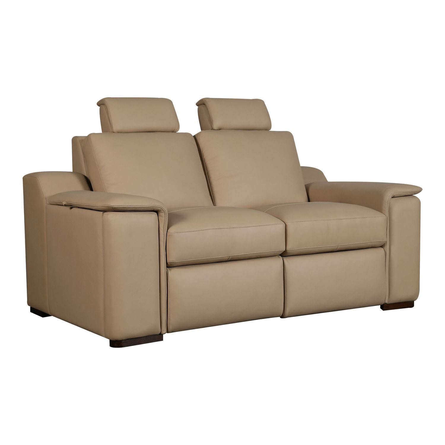 Armon's low-profile silhouette emulates a stationary aesthetic with its fully finished frame and 360-degree visual appeal, making it suitable to open floor plans. Featuring a moderately scaled track arm with a soft pad-over arm detail, box banded seat and back cushions, and decorative top-stitching detail, Armon radiates comfort and versatility. In the 'all closed' position, Armon delivers a quiet luxury aesthetic. When the comfort features and entertainment technology are engaged, Armon transforms into an epicenter of comfort and connection. Incline action with Power Foot function and Zero Gravity leg lift combined with concealed manual headrests stand at the ready to maximize your relaxation and comfort. The pop-out arm-sides include storage, stainless steel cup holder, as well as USB and USB-C charging ports. Further amplifying the experience, each piece includes wireless technology and concealed speakers located on each arm-side for easy connectivity to Smart TVs or personal streaming devices. Armon is dressed in a Top Grain Leather with Match. The Fawn colored leather features a smooth grain, low sheen, and soft talcy finish coat - making Archer perfectly suited for active family environments.