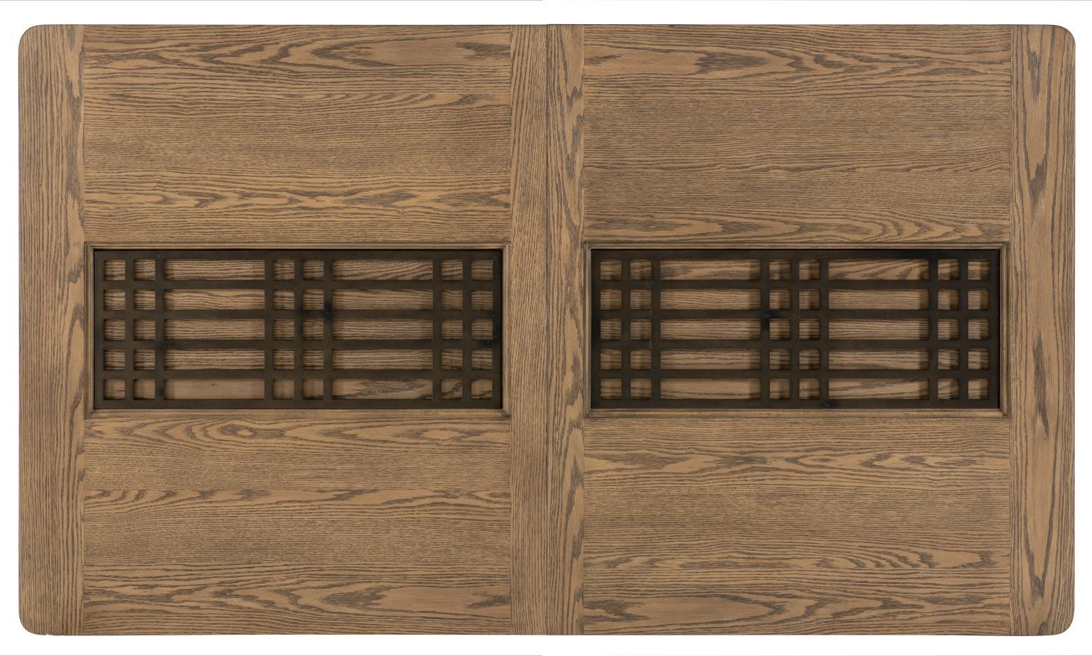 Crafted of Hardwood Solids with Oak Veneers in a Dusty Barley finish,, the Beacon Hill bedroom and dining furniture collection has an Arts & Crafts-inspired design that offers a fresh traditional look. Striking grid-like wood fretwork on the headboards and some case pieces are finished in a contrasting metal-colored finish that matches the Oiled Bronze hardware.