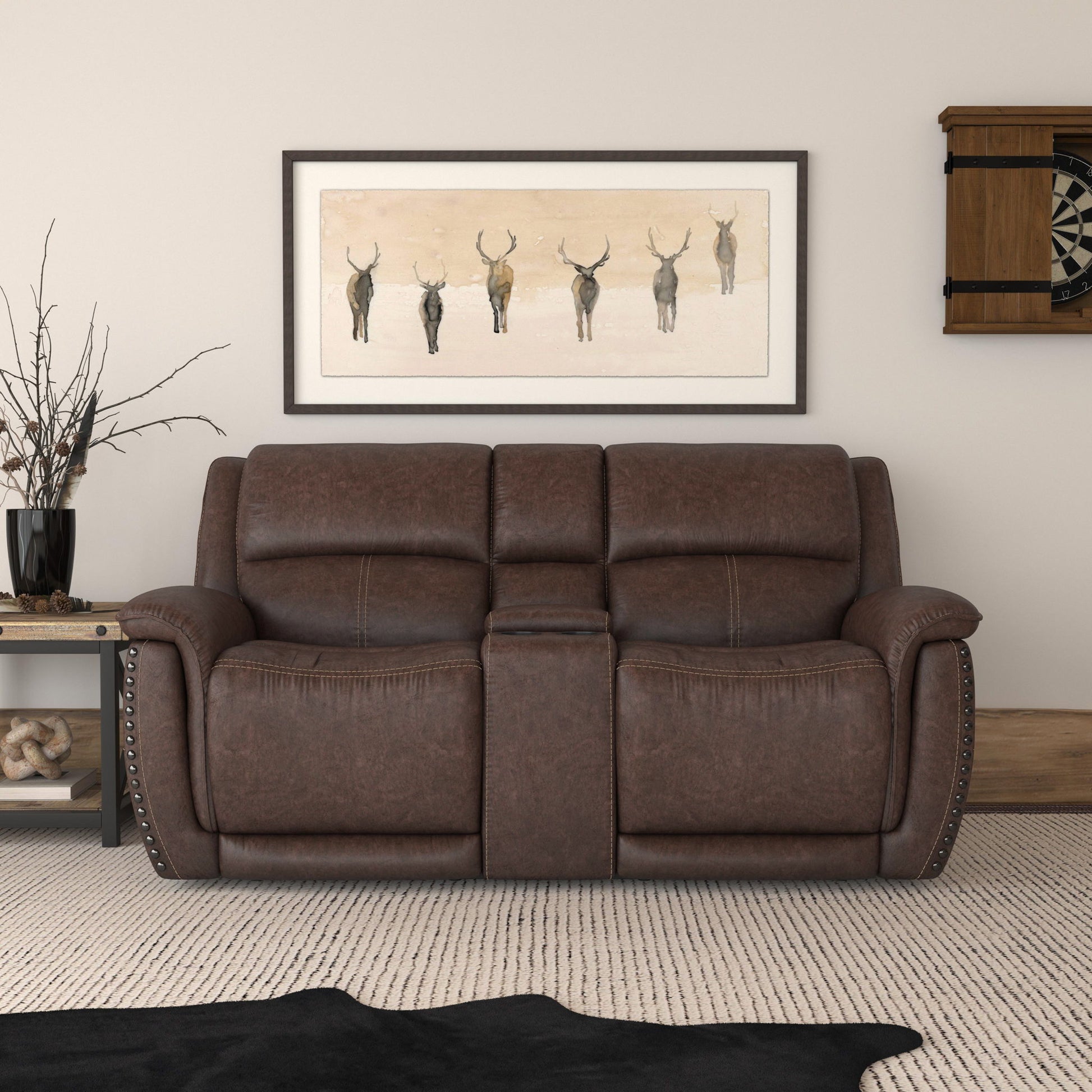 Beautiful, traditional style is enhanced with modern features and ergonomics with the Beau fabric power reclining loveseat with console and power headrests. Striking nailhead trim and flange-edge stitching detail make a timeless design statement that looks equally at home in a modern farmhouse living room or rustic man cave. Soft, pad-over arms, contoured seats and extended footrests offer exceptional comfort for two, while Zero Gravity technology provides a feeling of weightlessness. Useful features such as charging ports, a center storage console and power headrests offer added convenience that will make Beau your favorite spot in the house.