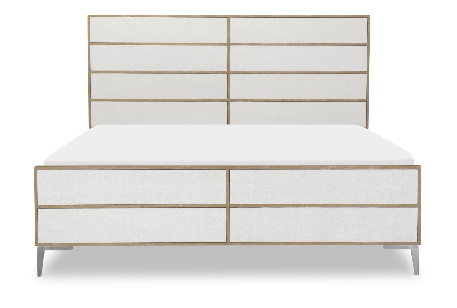 Capture a modern resort feeling with the Biscayne Collection by Legacy Classic - Modern. A and airy finish is paired with faux woven raffia alabaster doors and boucle fabrics for a serene and stylish setting.