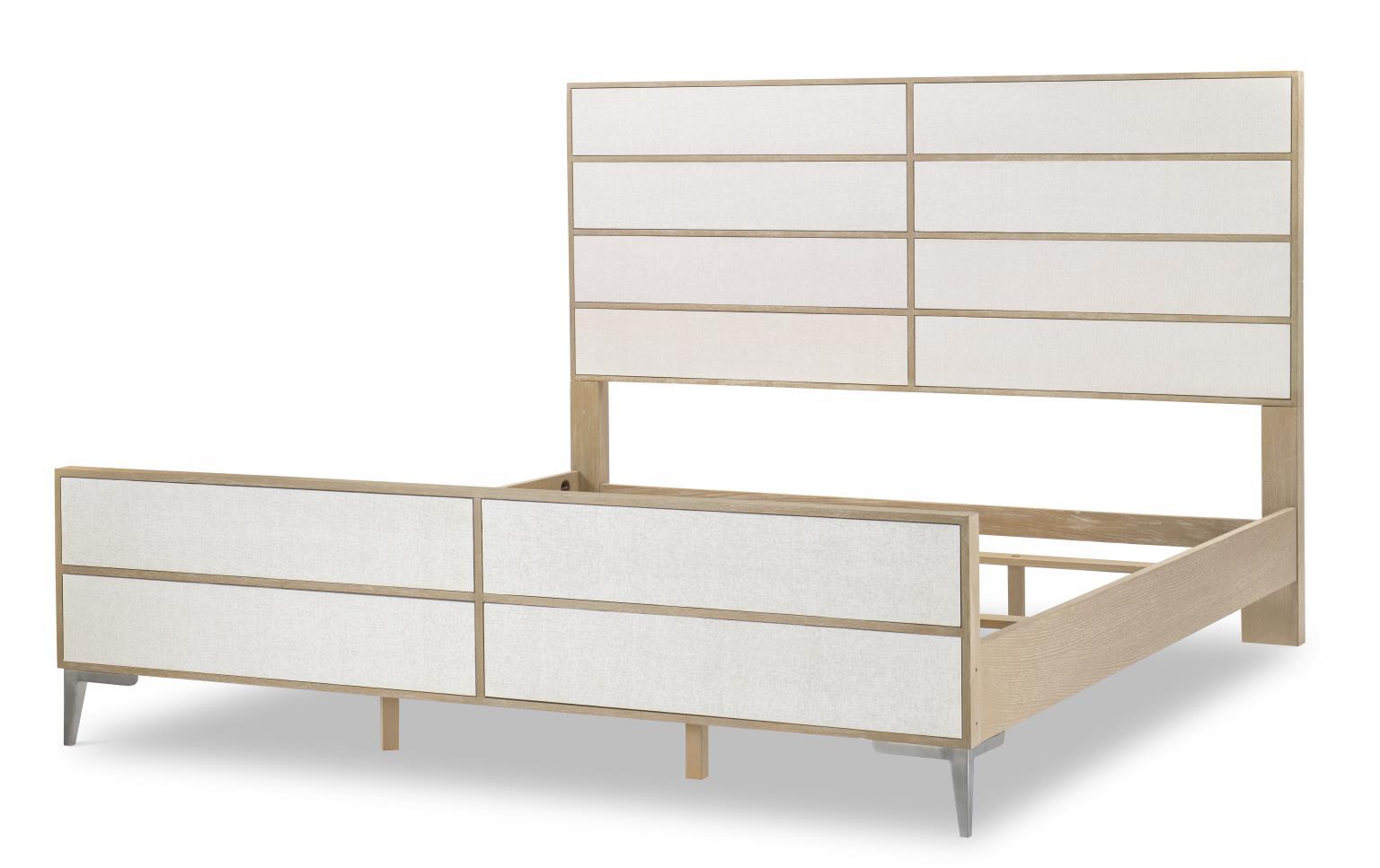 Capture a modern resort feeling with the Biscayne Collection by Legacy Classic - Modern. A light and airy blonde Malabar finish is paired with faux woven raffia,, alabaster doors,, and boucle fabrics for a serene and stylish setting.