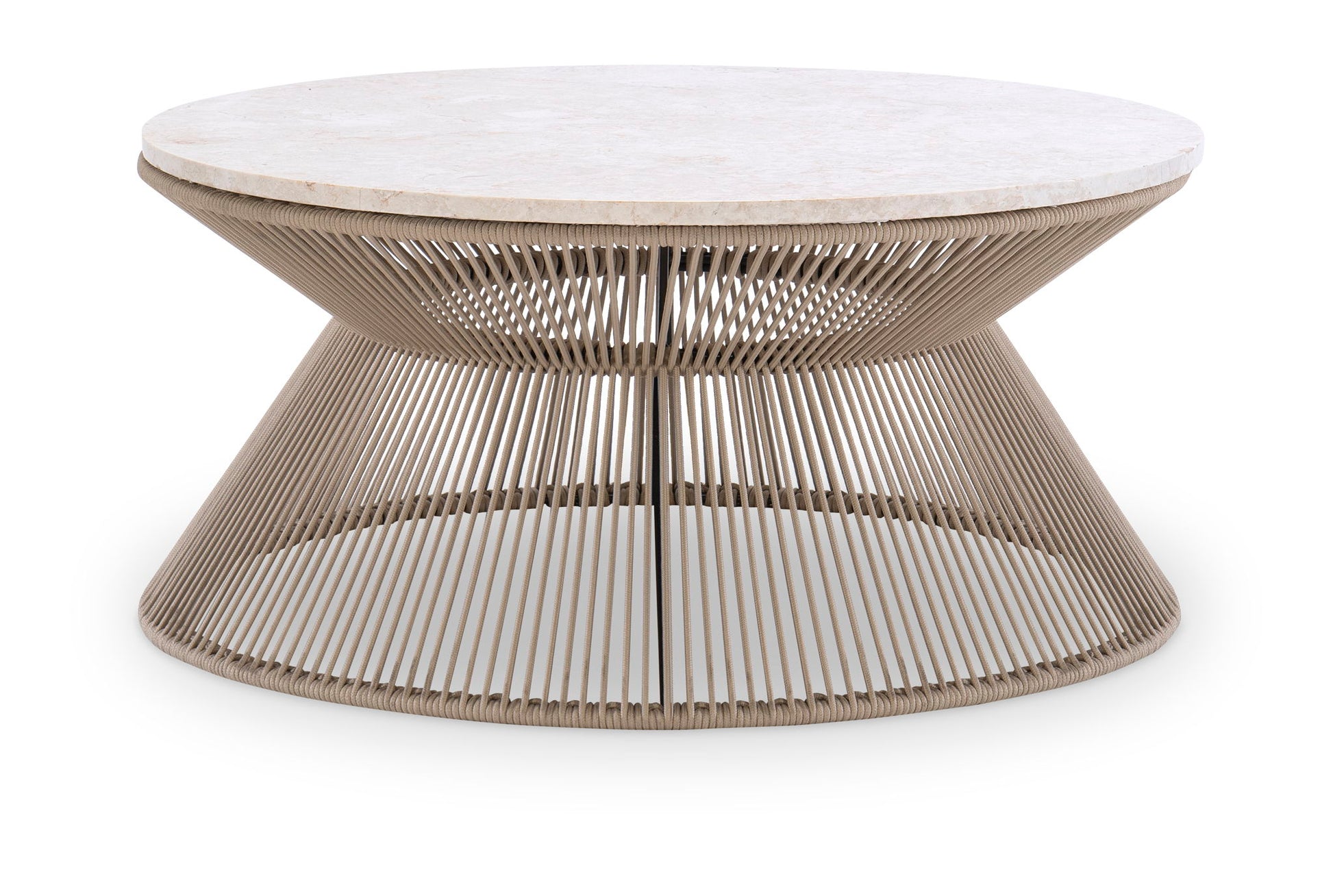 Biscayne - Rope Cocktail Table With Travertine Top - Beige