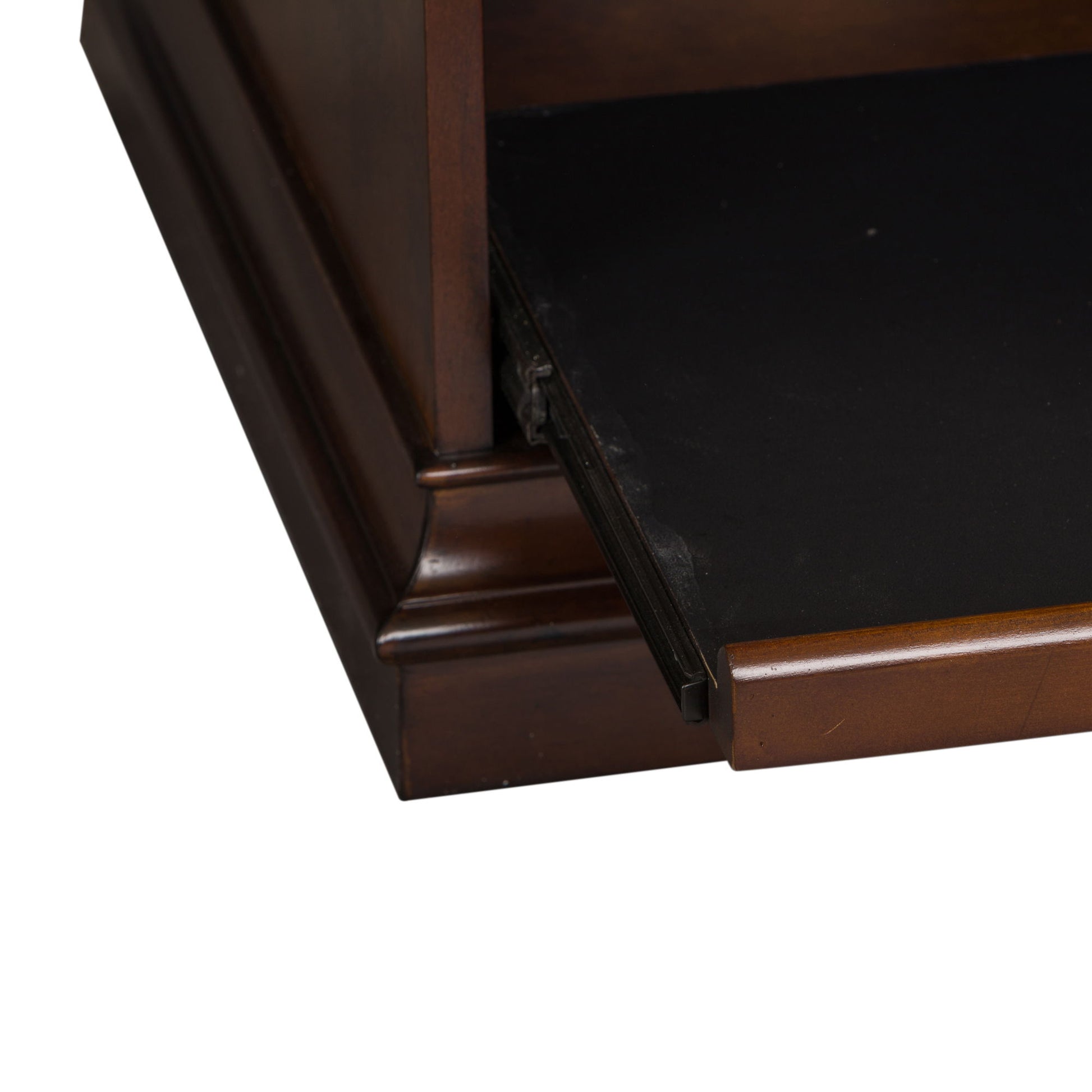 Crafted with poplar solids with cherry and birch veneers, features a smooth cognac finish, flip down keyboard tray, CPU tower/media storage space equipped with a slide out tray, and a locking file drawer for added security. Cannot stand alone. Pair with the top for a complete credenza.