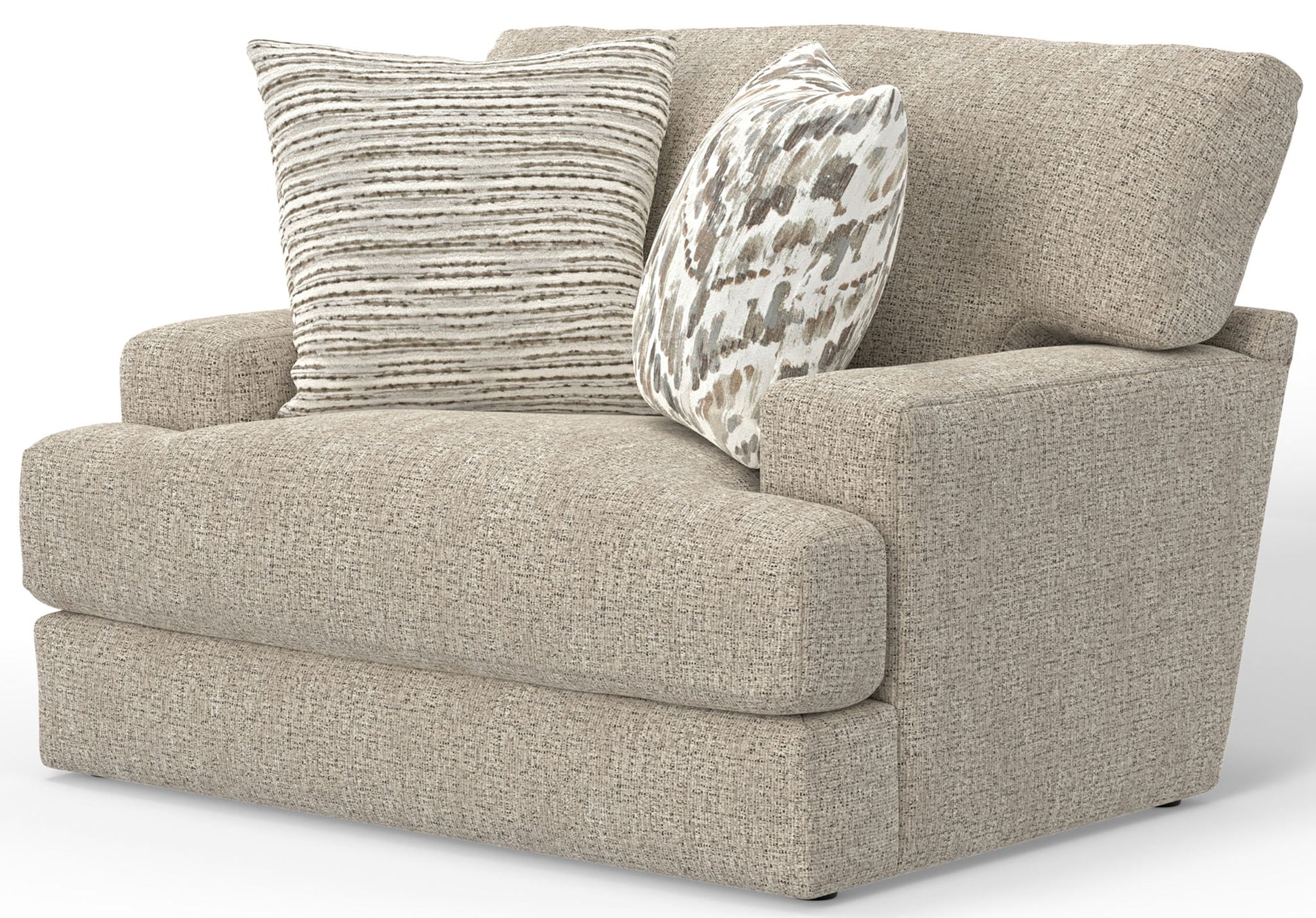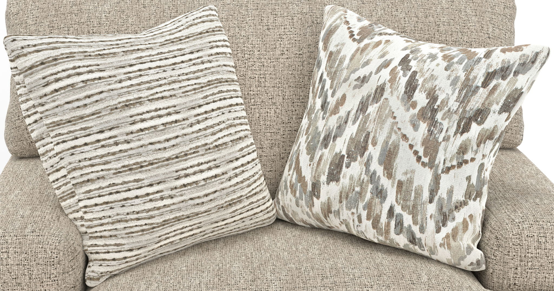 Brett features the ultimate comfort of our Cuddler Cushion and offers a mix of toss pillows in a variety of colors and textures - including a luxurious "fil coup��" (or "cut threads") treatment. This stationary sofa group is available in your choice of two colors: Lotus or Honey.