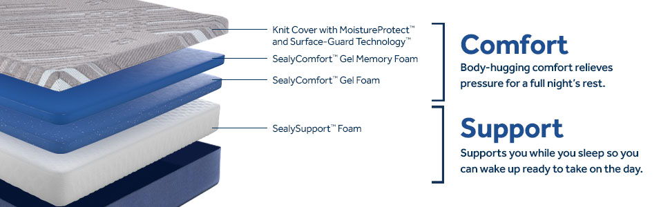 The 12" Reflexion by Sealy foam mattress features our SealySupport™ and SealyComfort™ Gel Foams with an added layer of SealyComfort™ Gel Memory Foam for extra cooling and conformance. A moisture-wicking, antibacterial cover helps keep the mattress protected, and the mattress comes conveniently compressed in a shippable box.