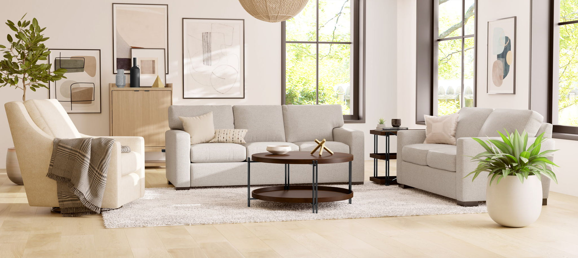 Plush, deep seating and a wealth of cushioning. Bryant offers modern, clean lines that are contrasted by its softly padded arms and boxed seat cushions. The arms and seat cushions are detailed with single-needle top stitching, while the bold block legs add a solid finish to this design.