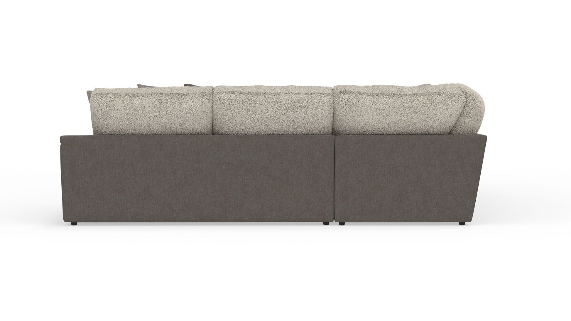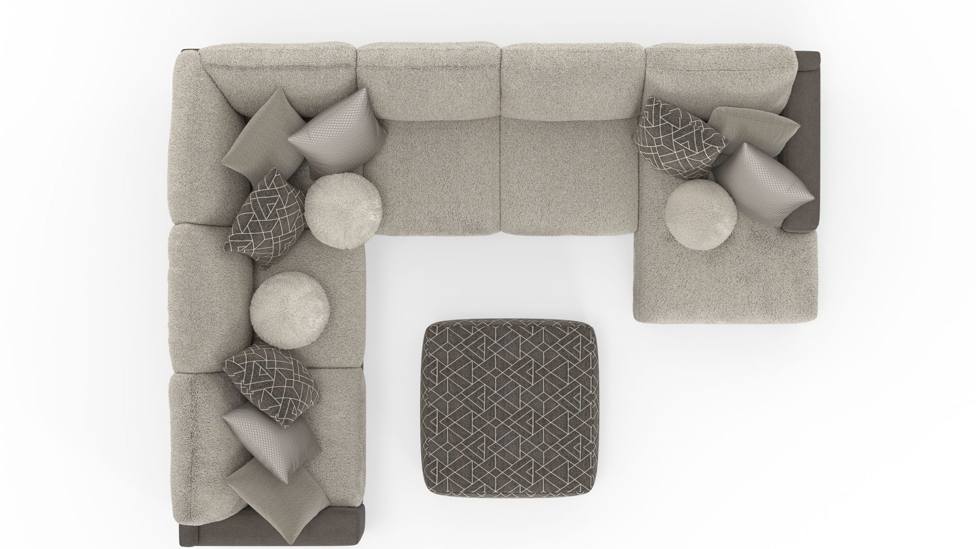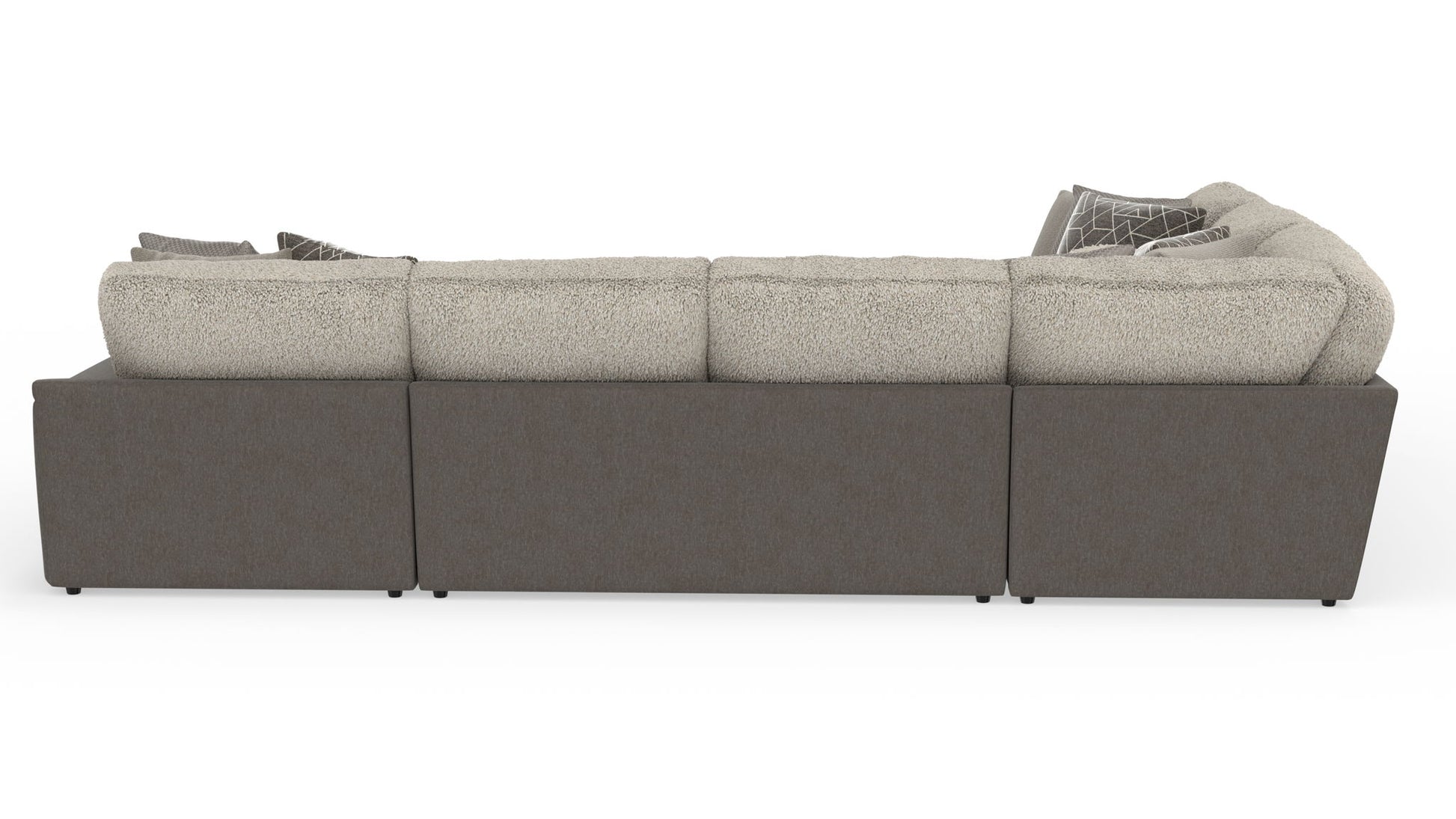Canyon is a stationary Modular Sectional group that the ultimate comfort of our Cuddler Cushion. This dual-fabric application is accented with an ecelectic mix of toss pillows in a variety of textures - including sphere pillows in a luxurious faux fur. Canyon includes a convenient Cocktail Ottoman and is available in your choice of two color combinations: Slate/Fawn or Platinum/Grey.