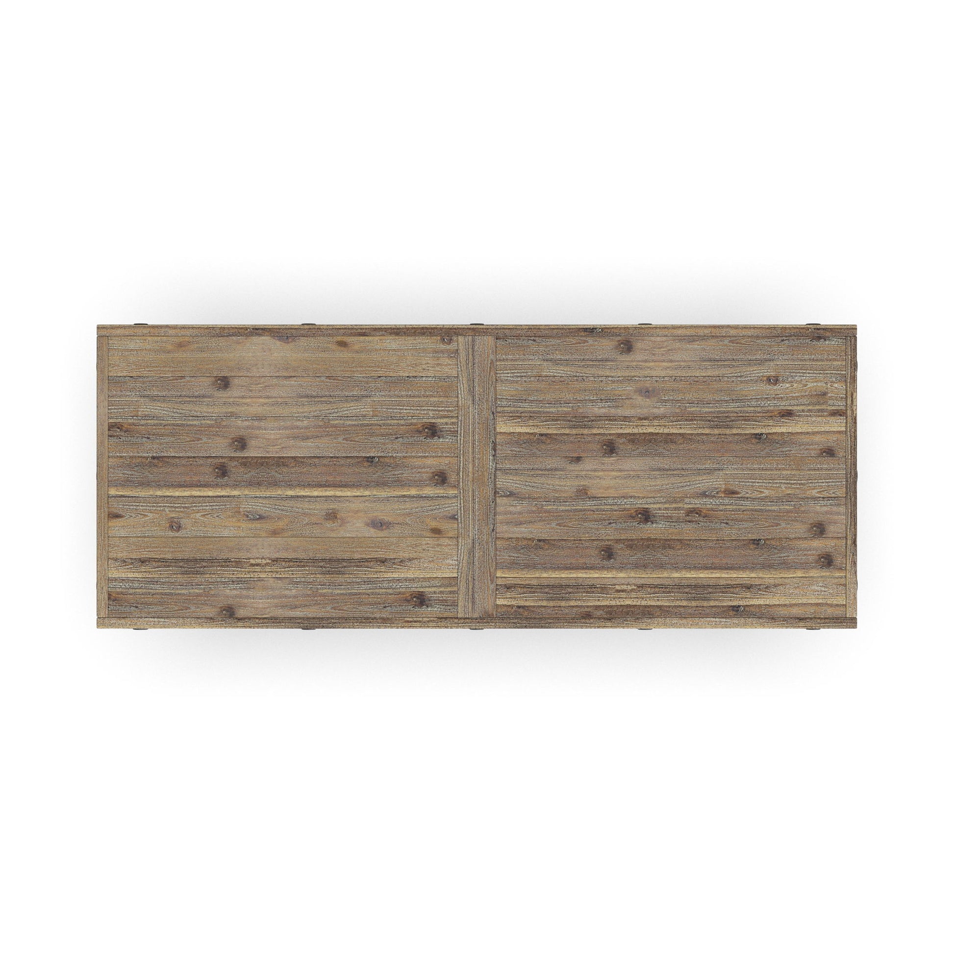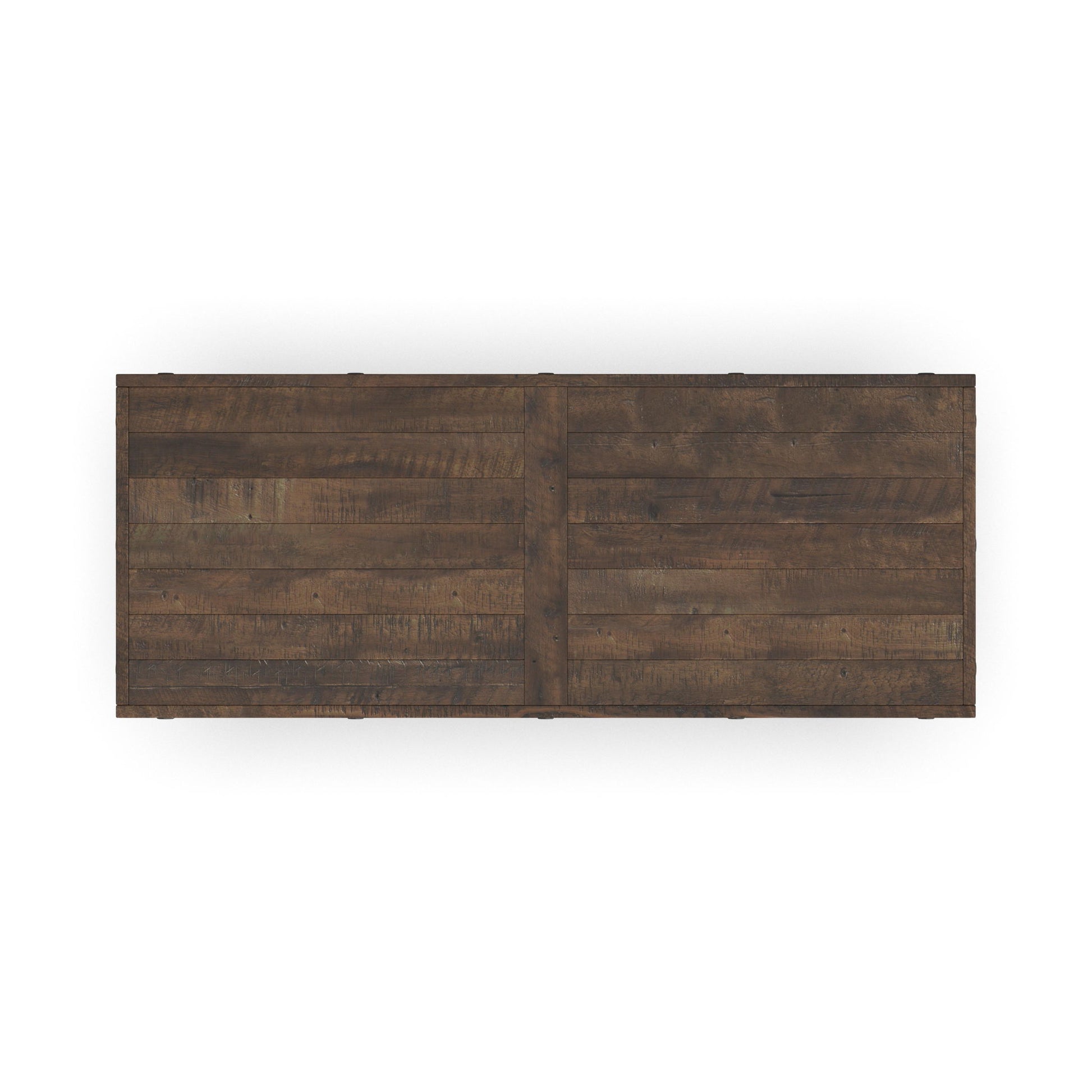 Showcase your family photos or display your cherished collectibles with the Carpenter sofa table. Versatile enough to stand on its own in an entryway or as a companion to a sofa or sectional, this table features a planked wood top and an open lower shelf to offer ample display area. Hand-worked metal frames and exposed bolt heads provide an industrial vibe, while distressed acacia planks give a reclaimed, rustic look. This table's dark brown rustic style is sure to elevate your living space.