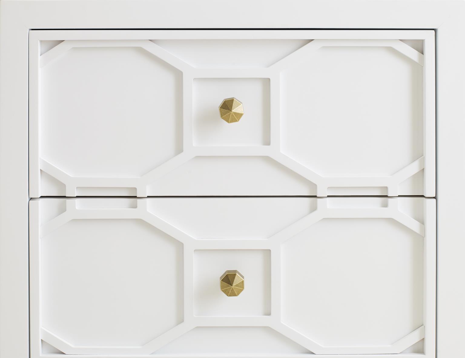 Rachael's Chelsea youth collection is a glamorous,, sophisticated grouping that brings her fashion-forward taste to any age. From storage to sleep to study,, these modern,, intriguing pieces will be loved from a young age to a college dorm room. The clean,, transitional lines of the white finish are offset with gold accents and Soft Gold Finish Knob hardware,, making each piece as warm and inviting,, as it is stylish.