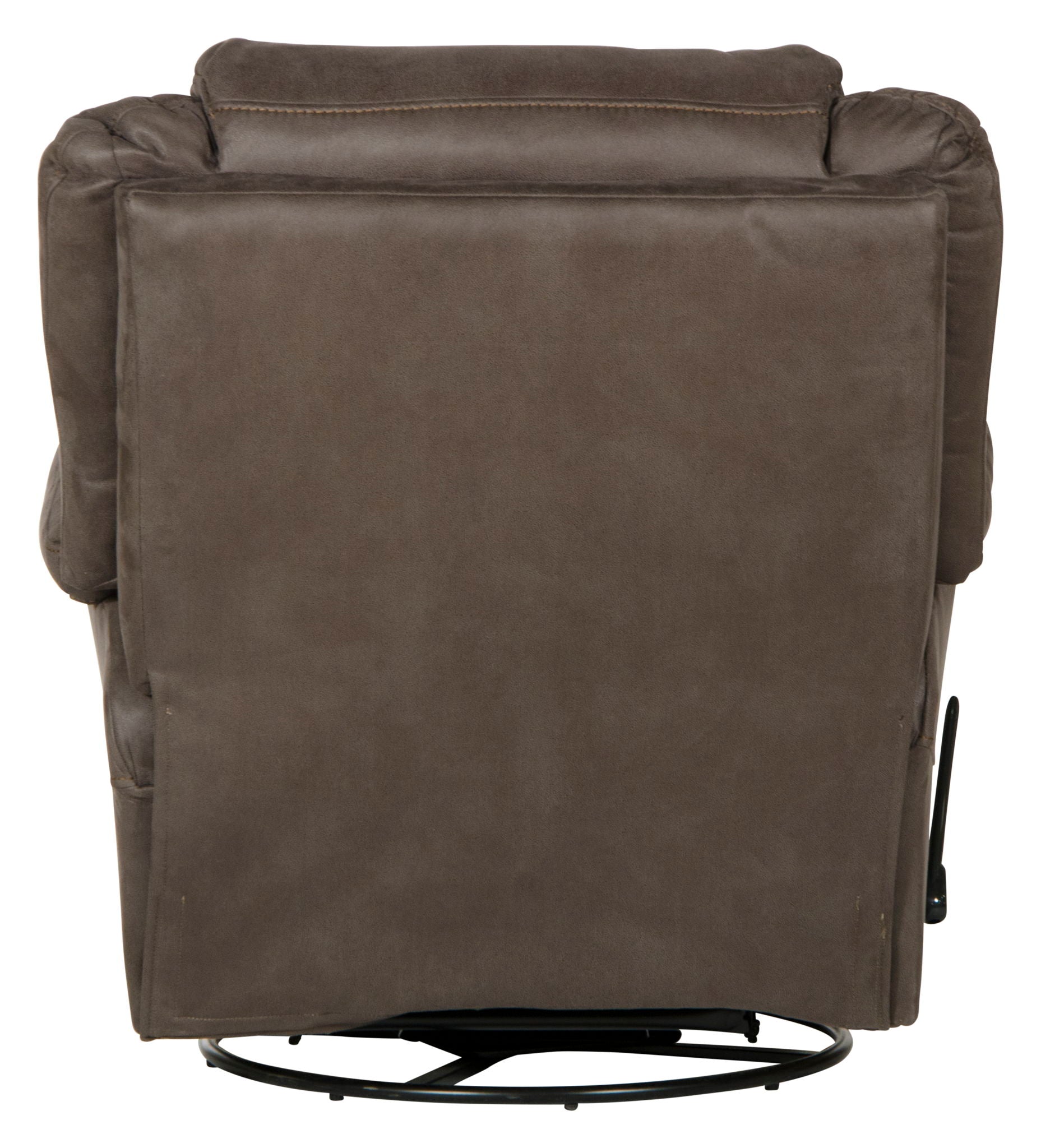 COLE is a Chaise Swivel Glider recliner in a thick polyester fabric with decorative luggage stitiching.