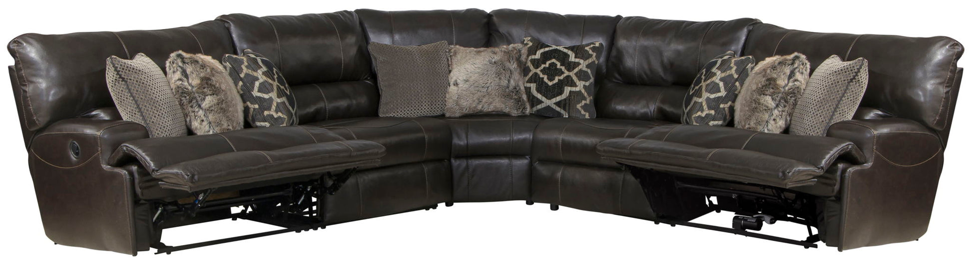 Como - 5 Piece Italian Leather Match Reclining Sectional