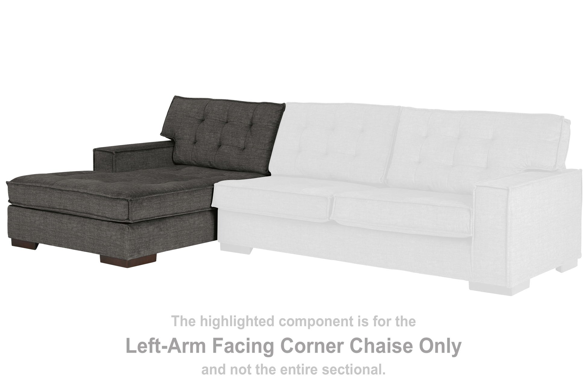 This left-arm facing corner chaise is made with polyester velvet upholstery. Pairs with other items in the series to make a sectional.