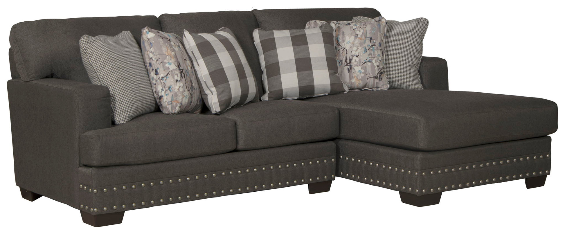 The contemporary farmhouse styling of the Crawford sectional brings comfort and style to any room. The seats are constructed of individually pocketed coils encased in foam and topped with a layer of cool gel infused memory foam for a long lasting, comfortable and supportive seat. Covered in a soft durable 100% polyester fabric the Crawford is durable enough for use in a family room, basement or bonus room. The exceptional styling shows through with the included decorator accent pillows and nickel nail head accents along the base rail.