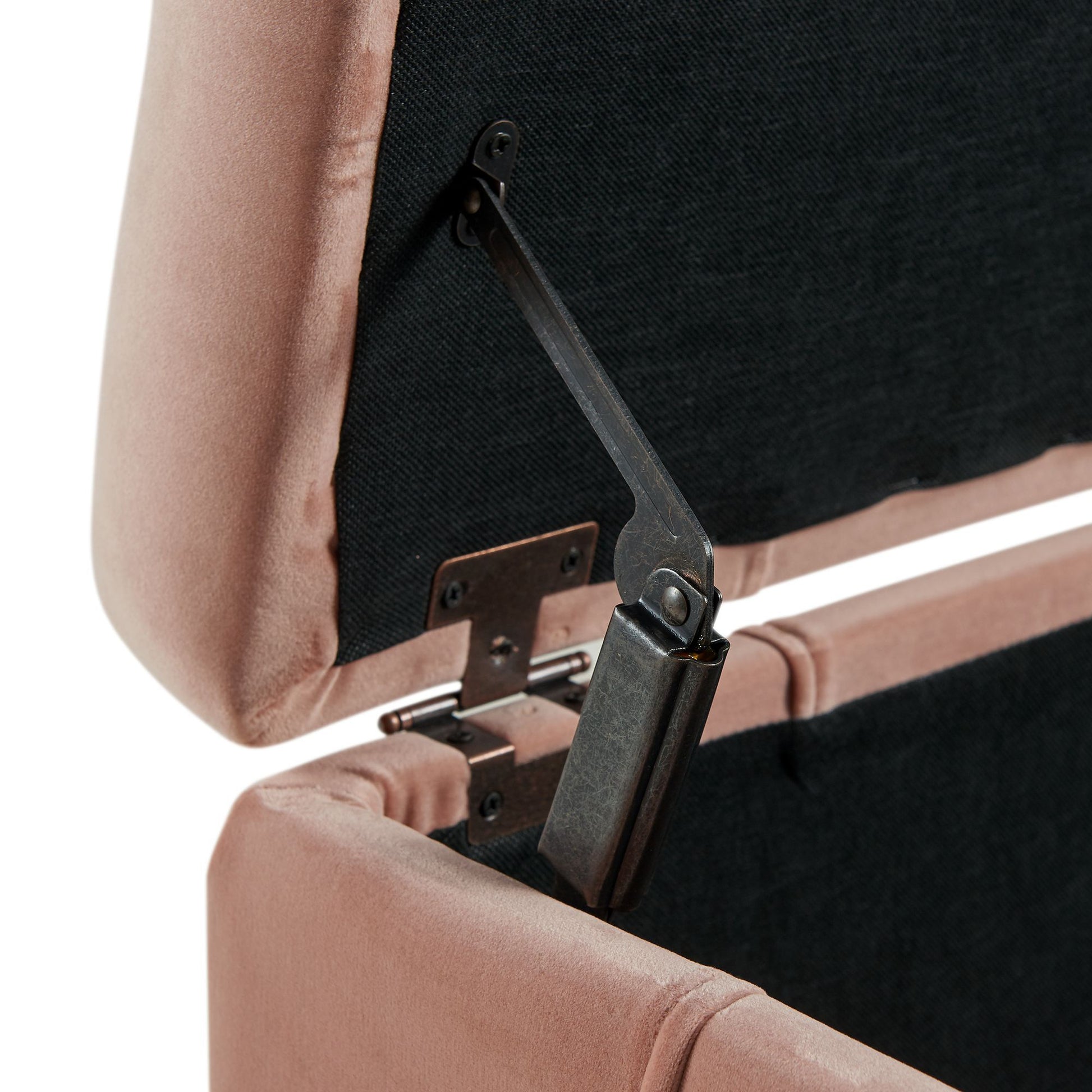 The Crosby Tufted Storage Ottoman is the missing piece for your home! This storage ottoman features a tufted lid, adding extra flair to this already stunning piece. Detailed square stitching and piping along the ottoman elevates it to the next level. Easily store away blankets in the available storage space. The velvet fabric complements the natural finish of the wooden feet beautifully.