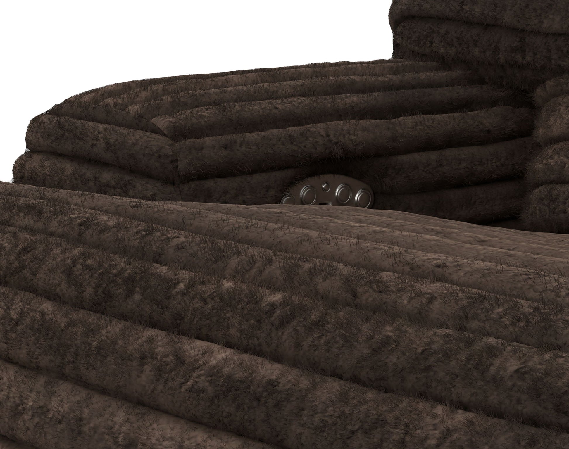 Recliner with Deep Seat, Power Headrest, and Faux Fur, available in two colors: Chocolate and Moonstruck