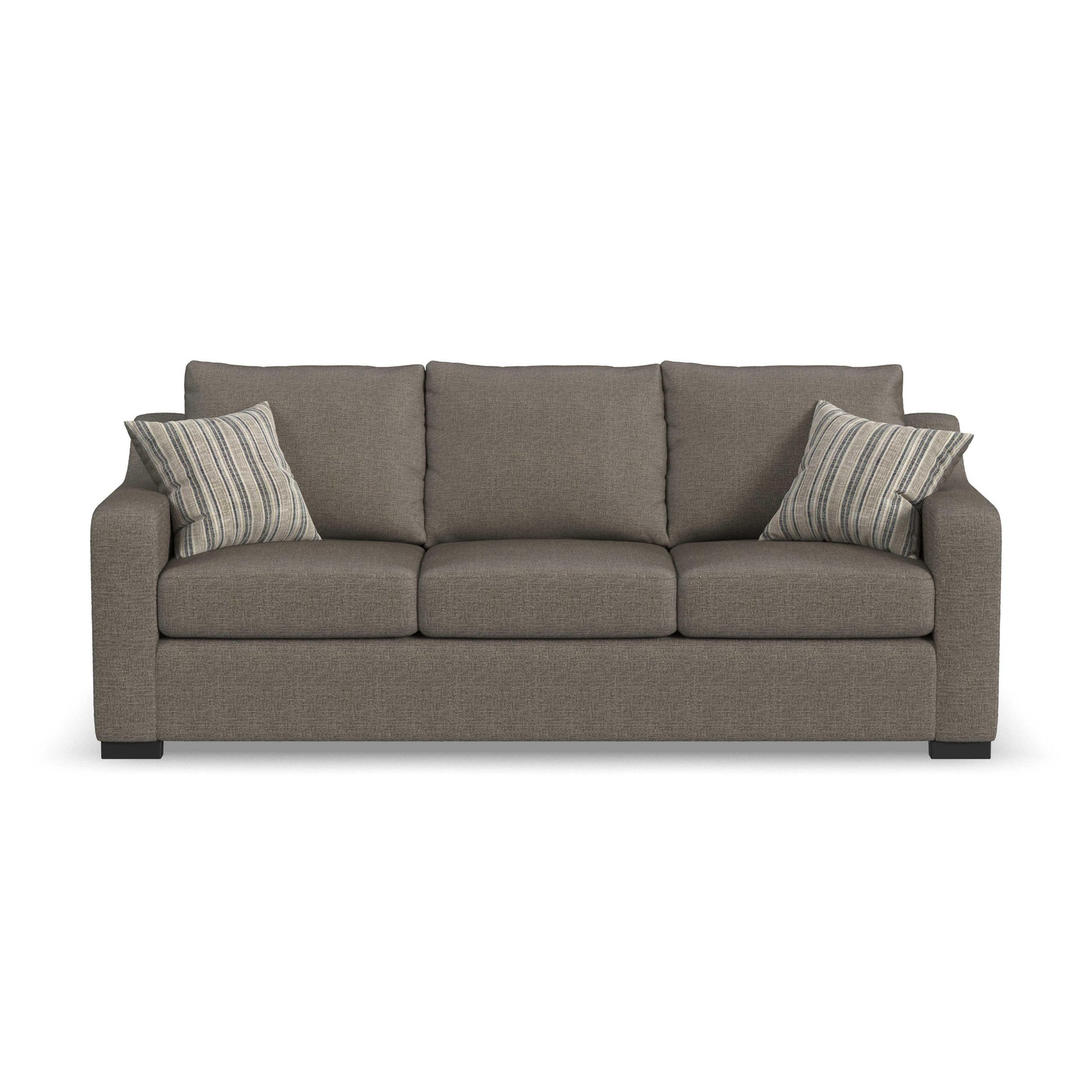 Your spot to sit back and unwind, the Cypress sofa highlights soft curves on a clean and refined frame. Soft track arms gently slope up to the back rail. This style’s modest look comes with casual comfort that is built to last. Three square, loose back cushions invite you to sit back on three plush seat cushions that will retain their shape over time and can be flipped and rotated. Black recessed block legs put this piece low to the ground. Finally, choose from two carefully selected fabric combinations, and style it based on your mood with two-sided accent pillows.