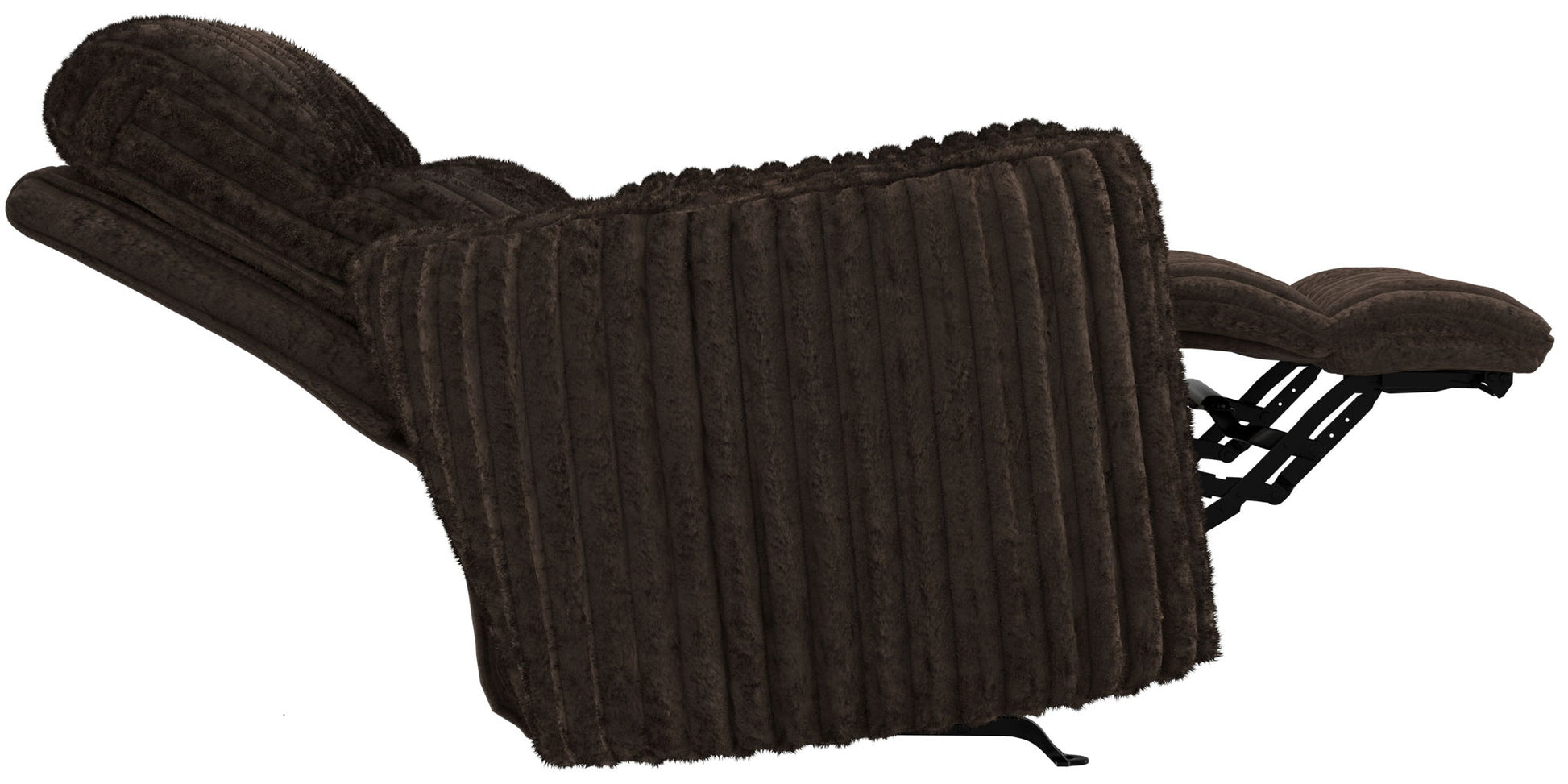 Recliner with Unique Shape, Comfort Bolsters, and Faux Fur