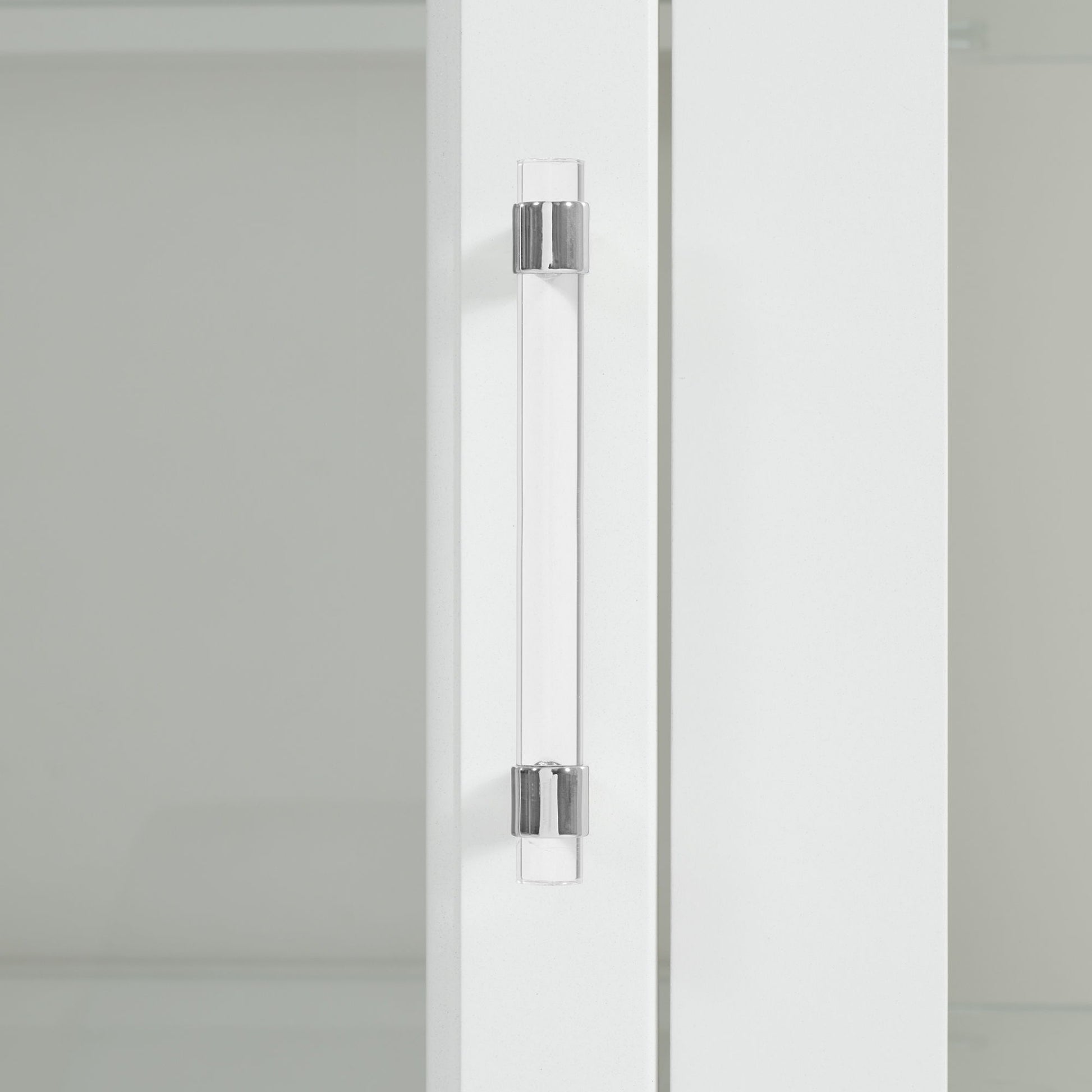 The Diedra Hutch exudes elegance and sophistication with its stunning white finish. It is a perfect dining piece for those who appreciate a modern and chic aesthetic. The glass shelves, diamond strip detail, and acrylic hardware add a touch of luxurious style and visual interest. Pair it with the Diedra Server to bring the perfect amount of functional storage with glamorous style to your home's dining room.