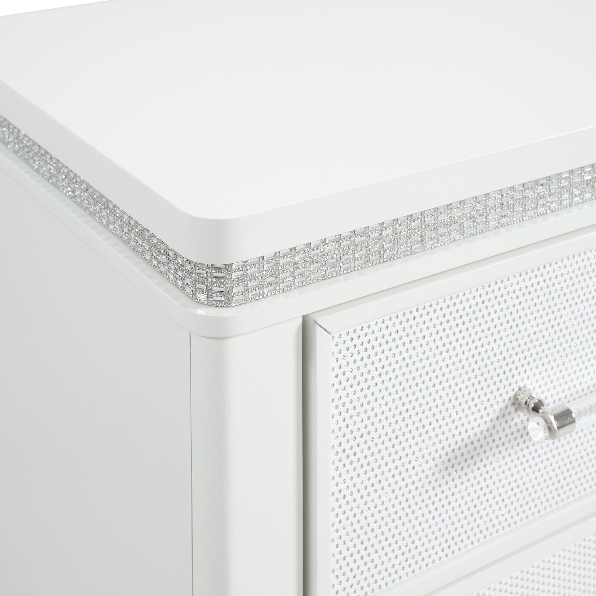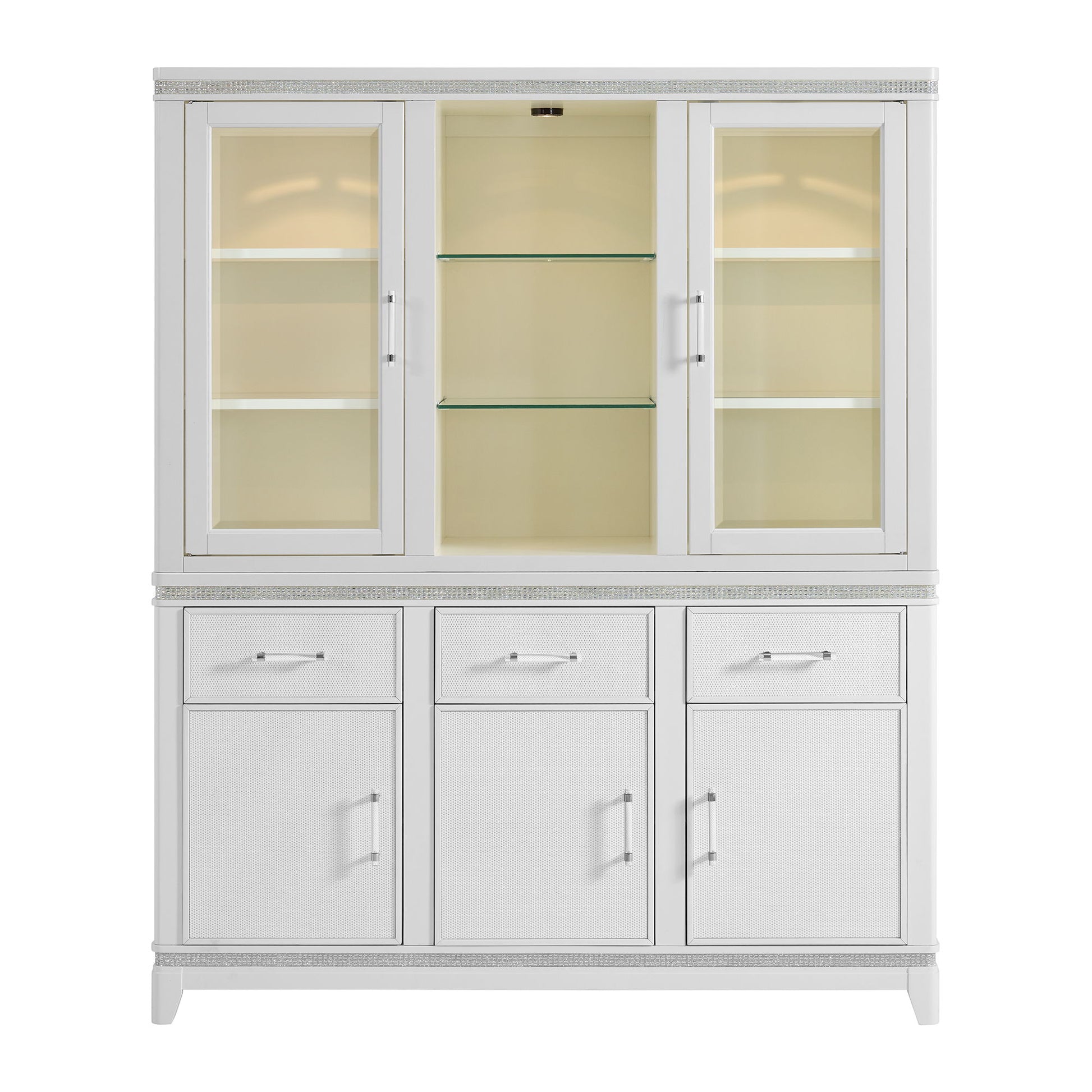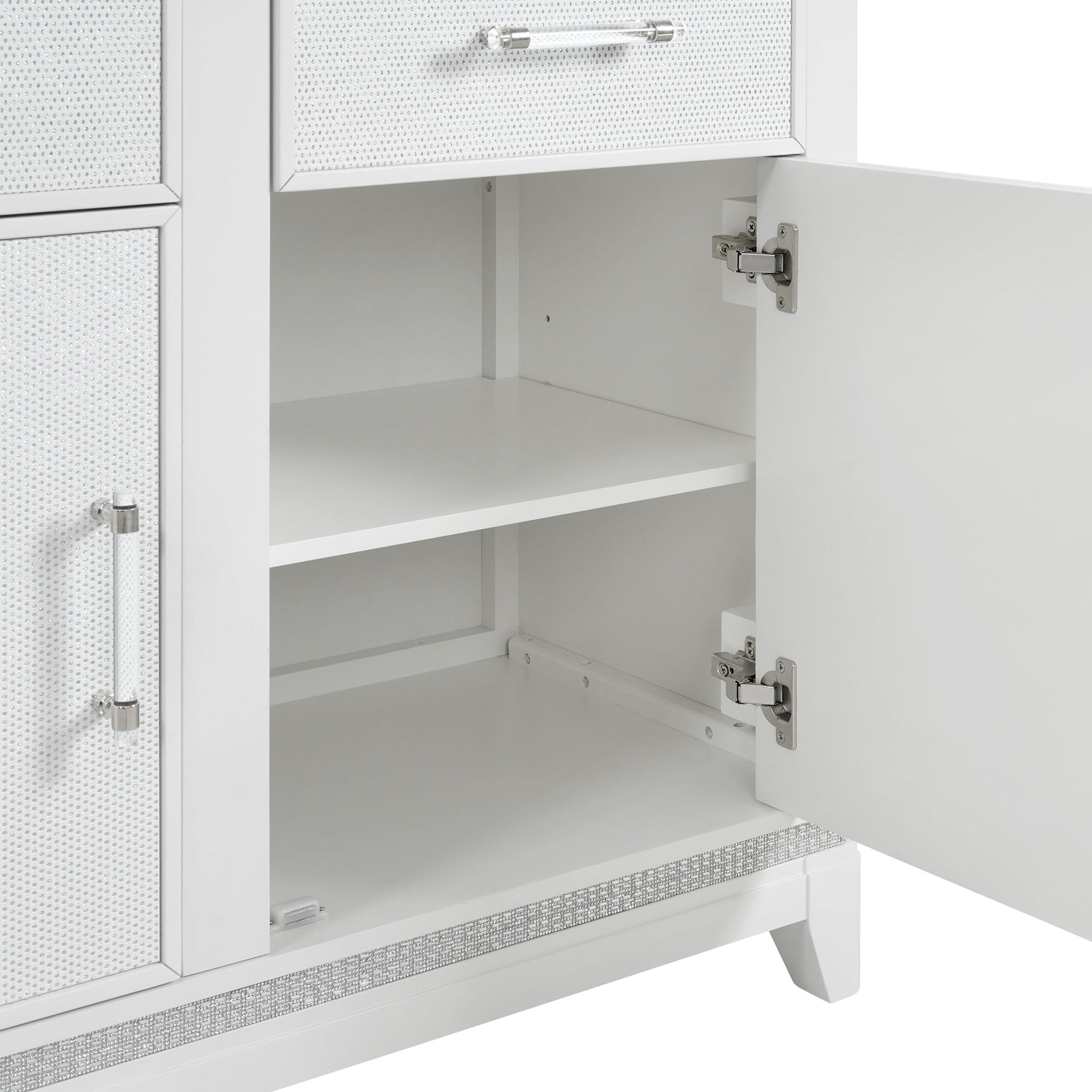 The Diedra Server exudes elegance and sophistication with its stunning white finish. It is a perfect dining piece for those who appreciate a modern and chic aesthetic. The diamond strip detail and acrylic hardware add a touch of luxurious style and visual interest. The Diedra Server is perfect to bring functional storage with glamorous style to your home's dining room.