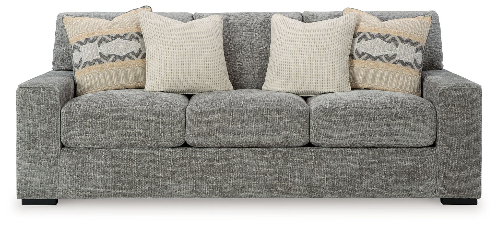 - High-density foam cushions wrapped in feather-fiber blend jacket
