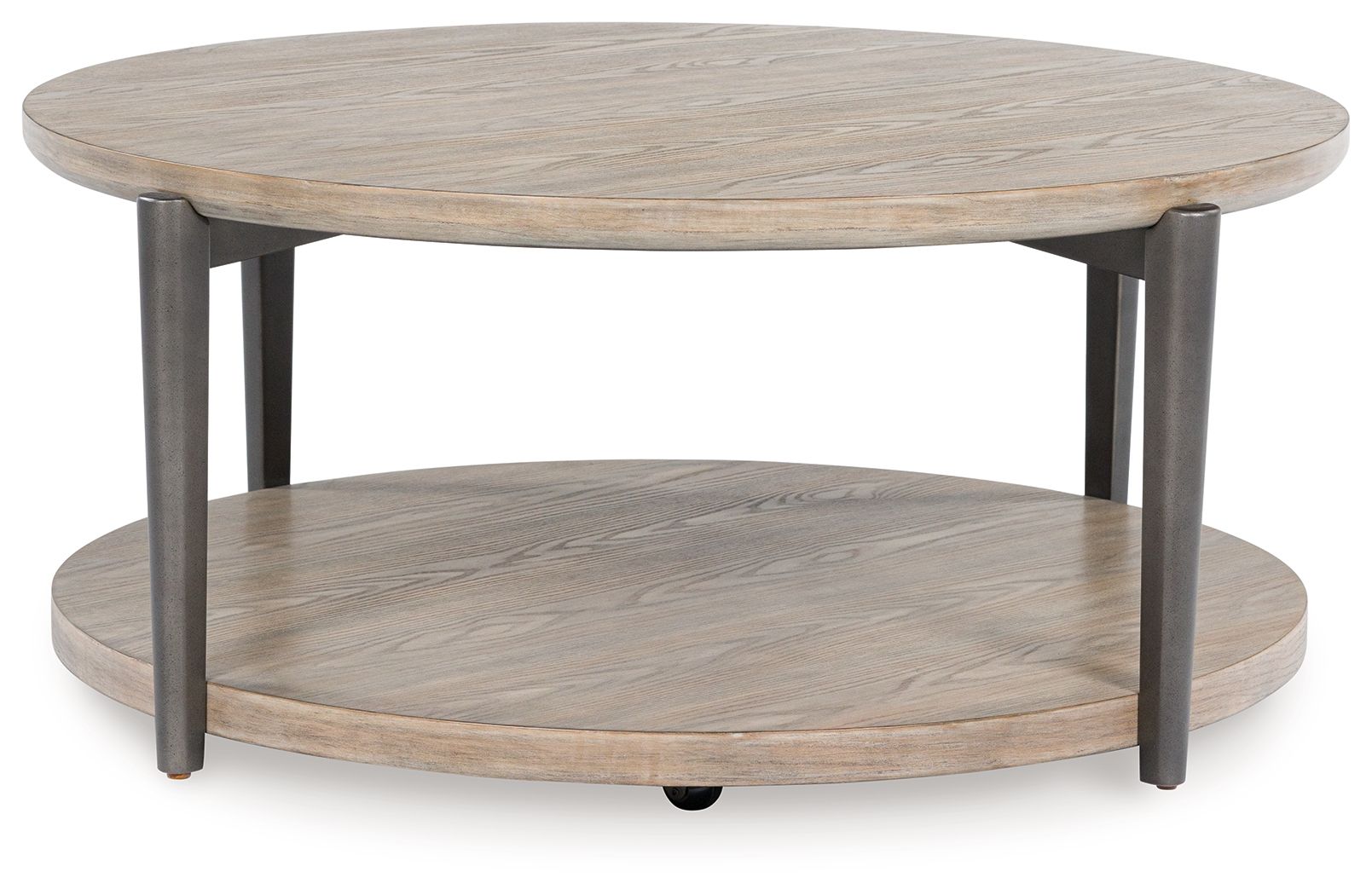 Dyonton - Round Cocktail Table - Light Grayish Brown