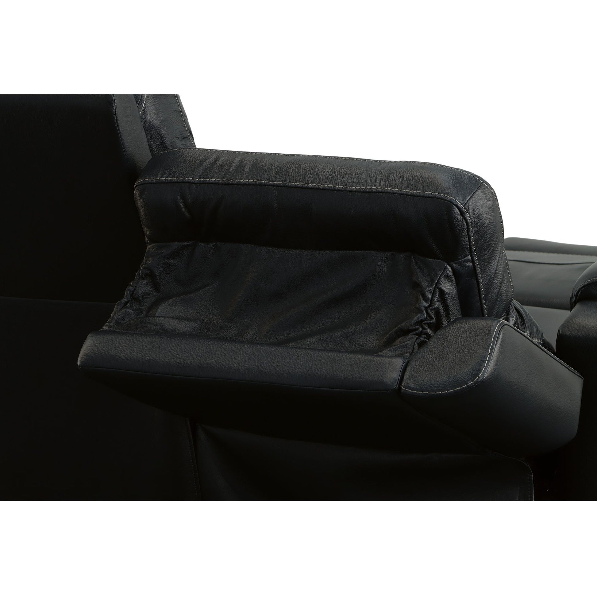 Create a comfy, supportive space for the family to gather with the Easton power reclining sofa with power headrests and lumbar. This plush, yet refined style features a high-divide back, padded track arms, and high-quality, deep blue leather upholstery. Customize your comfort with a power button that independently adjusts the recline, headrest and lumbar support on the end seats. Outfitted with contoured, high-density foam seat cushions and Flexsteel's patented Blue Steel Spring™ seat system, this sofa is built to stay comfortable and supportive for years to come.