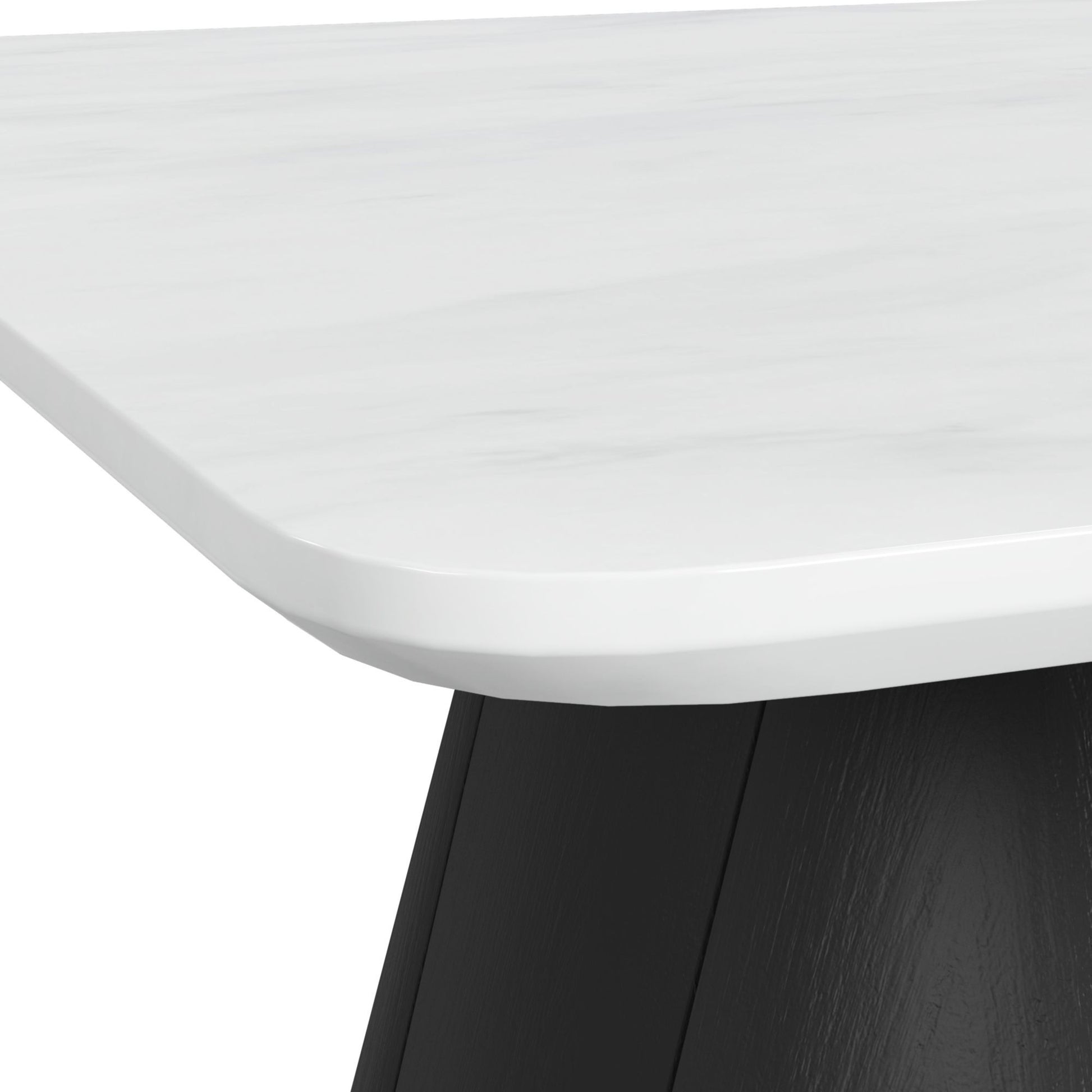 Add some modern aesthetic to your living space with the Edison Occasional Coffee Table. It provides ample surface area for decorative items and daily essentials. With its sleek black pedestal base and white marble-like top, this piece exudes elegance and sophistication. Whether enjoying a cup of coffee or hosting a social gathering, the Edison Occasional Coffee Table, also available in an end table size, is sure to elevate your home décor with some contemporary design.