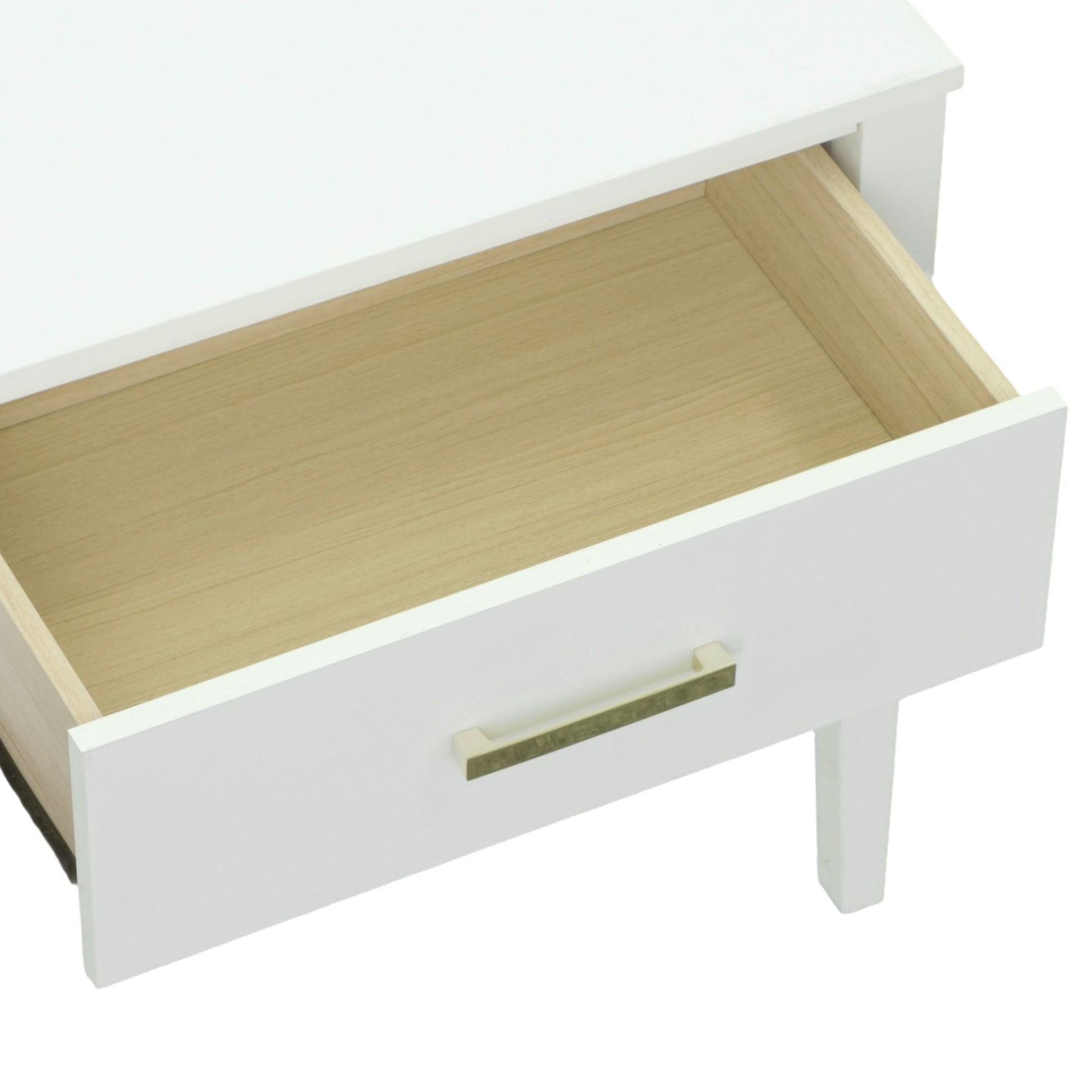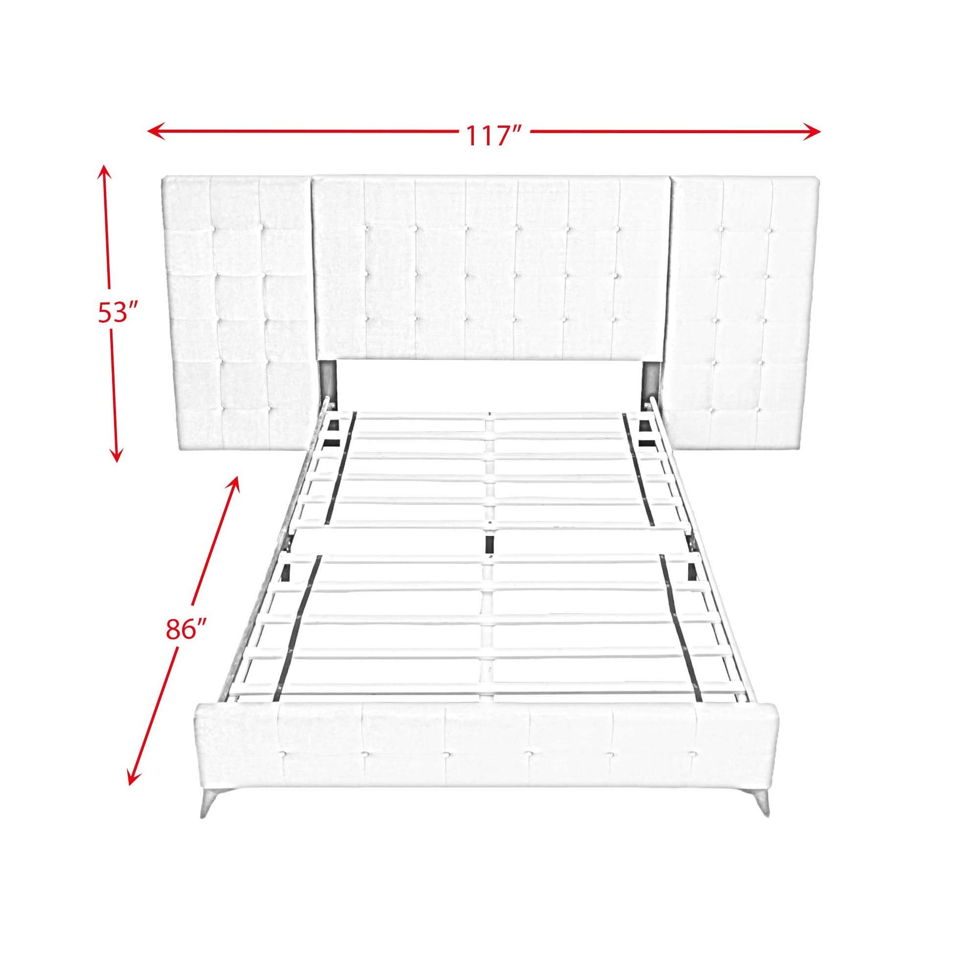 Give yourself the glamourous experience you deserve with this beautiful bedroom collection. The show-stopping set includes a beautifully upholstered grey fabric that covers the headboard, footboard, and side rail. A 12-slat hook system is anchored by golden legs that add a touch of modern beauty, while the tall, three-panel headboard adds just the right amount of drama to elevate any bedroom. Once paired with the two white-finish nightstands, you will have a luxurious environment that will have you feeling majestic each time you drift off to rest.