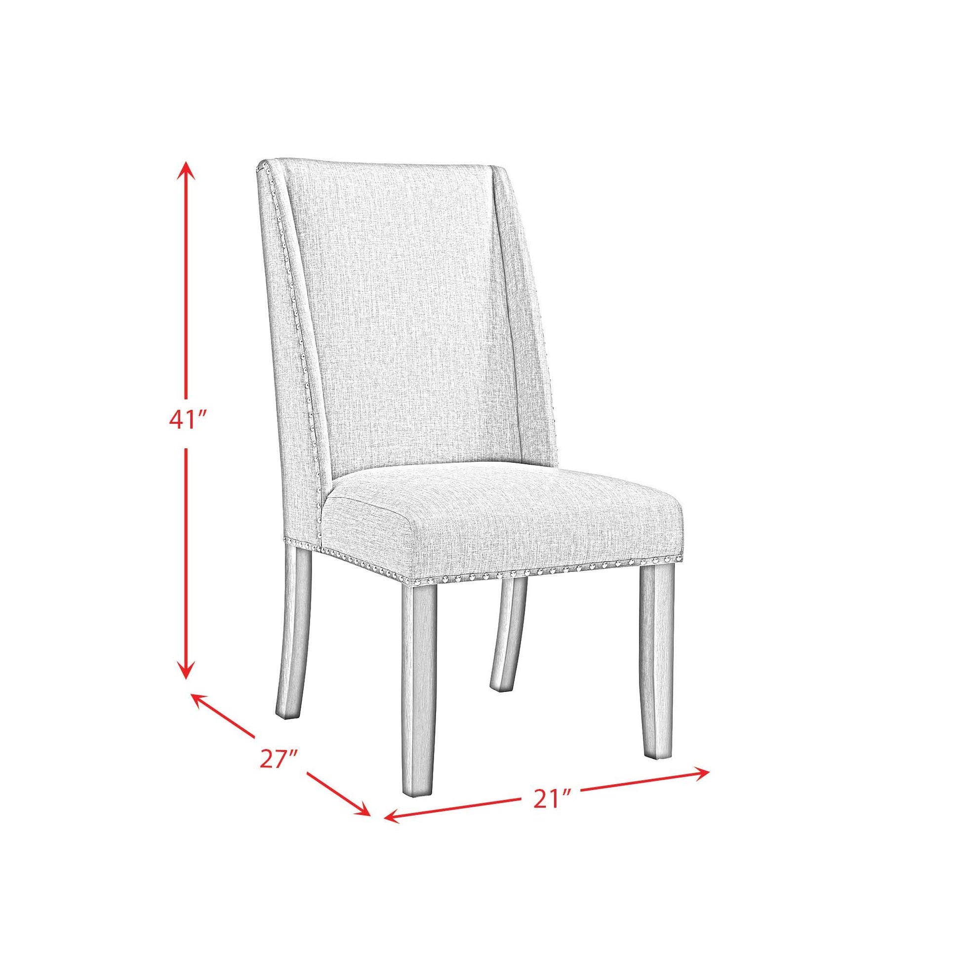 The Everdeen Side Chair with Grey Fabric offers a sleek and modern design that will elevate any space. The grey upholstery fabric adds a touch of elegance, while the silver nail head trim provides a subtle hint of luxury. With its high back support, this chair ensures comfortable seating for extended periods. The charcoal wood grain legs add a contemporary touch to complete the look.