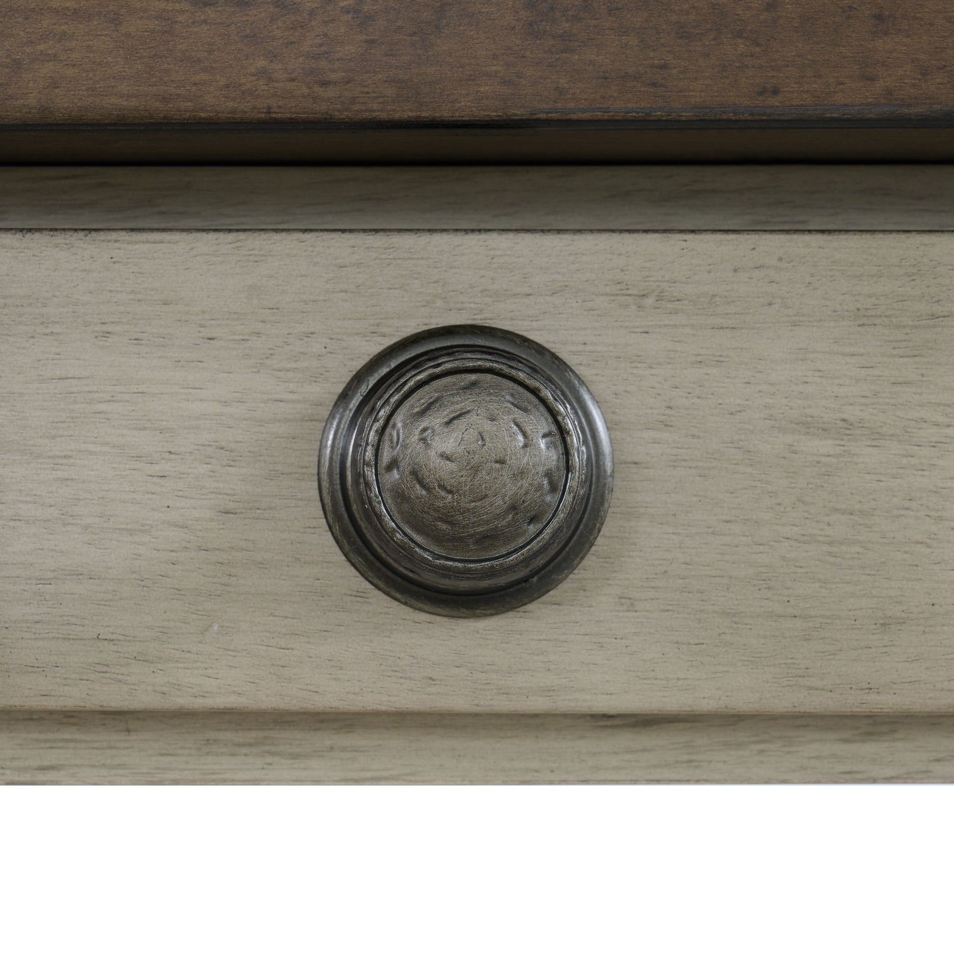 Bring farmhouse charm and functionality to your dining room with the Farmington Rectangular Dining Table. This table is finished in a beautiful two-tone design of medium brown and washed stone. It features lift-up storage compartments for easy access to essentials, while drawers with felt lining provide additional storage space. The English dovetail drawer construction with ball bearing glide ensures durability and smooth operation. Upgrade your dining experience with this stylish dining piece that combines traditional design with modern convenience.
