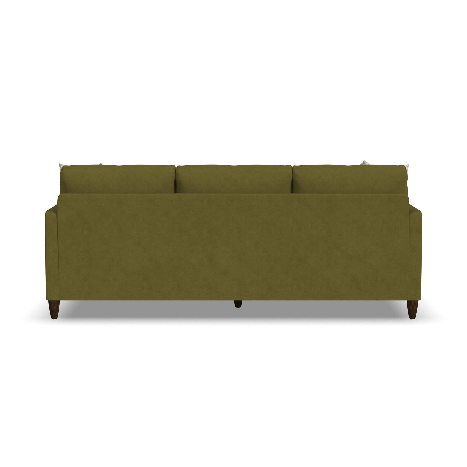 Sweet and Architectural. Clean lines and a cantilevered front make the Fern sofa a welcome addition to any home. With generous seating space from arm to arm, Fern provides plenty of roomy comfort for lounging, relaxing and entertaining. Round tapered legs positioned directly under the narrow track arms offer a distinctively modern architectural feel to spaces. Loose back cushions with a casual pleat design and the included knife-edge accent pillows complete the on-trend look of Fern.