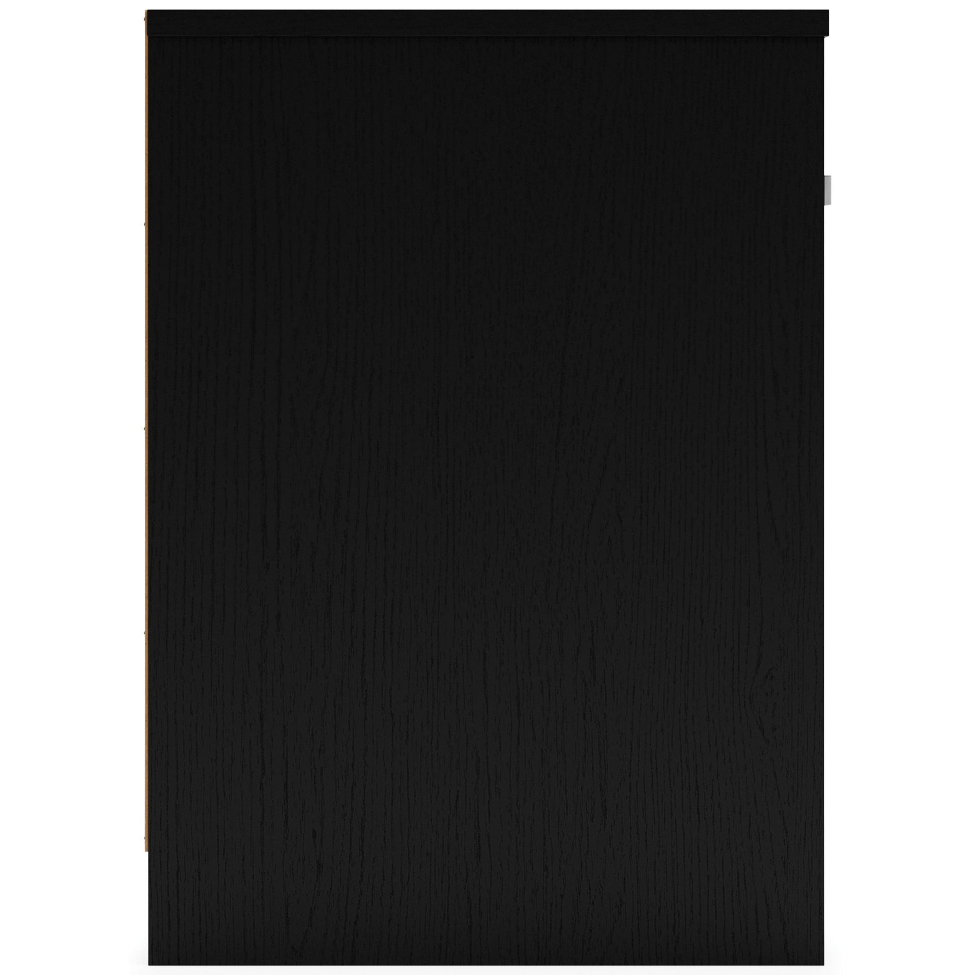 - Matte black finish with subtle replicated wood grain