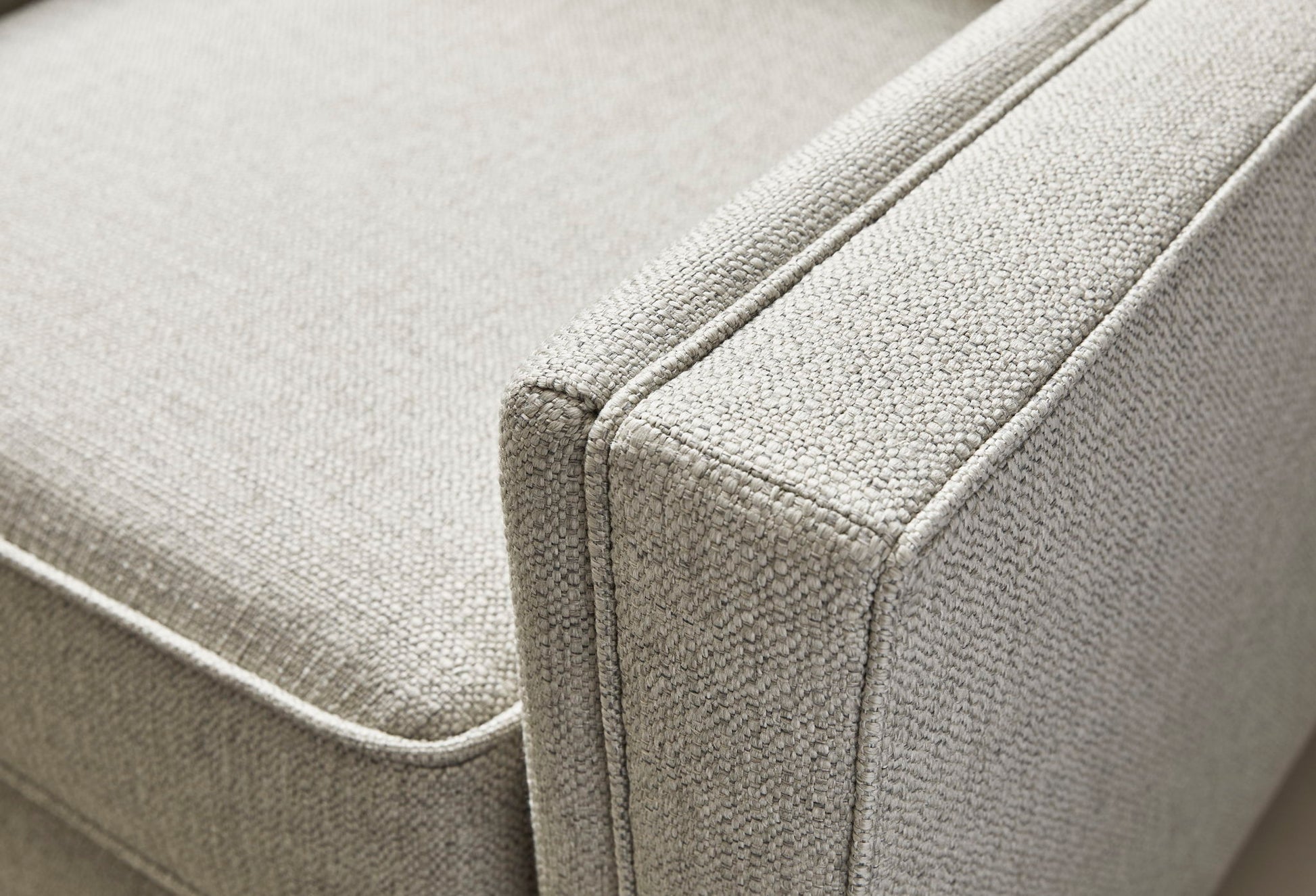 Tailored Elegance. Simplicity and elegance combine in a sophisticated silhouette with the Finley chair. Featuring a distinctive profile with sloped, tapered track arms and attractive welt detailing, this stationary design is an elegant statement for any home. The semi-attached back and removable, reversible seat cushion make it easy to clean and maintain your chair. This stately frame sits on sleek, square-tapered legs and is available in hundreds of fabric options to suit your style.