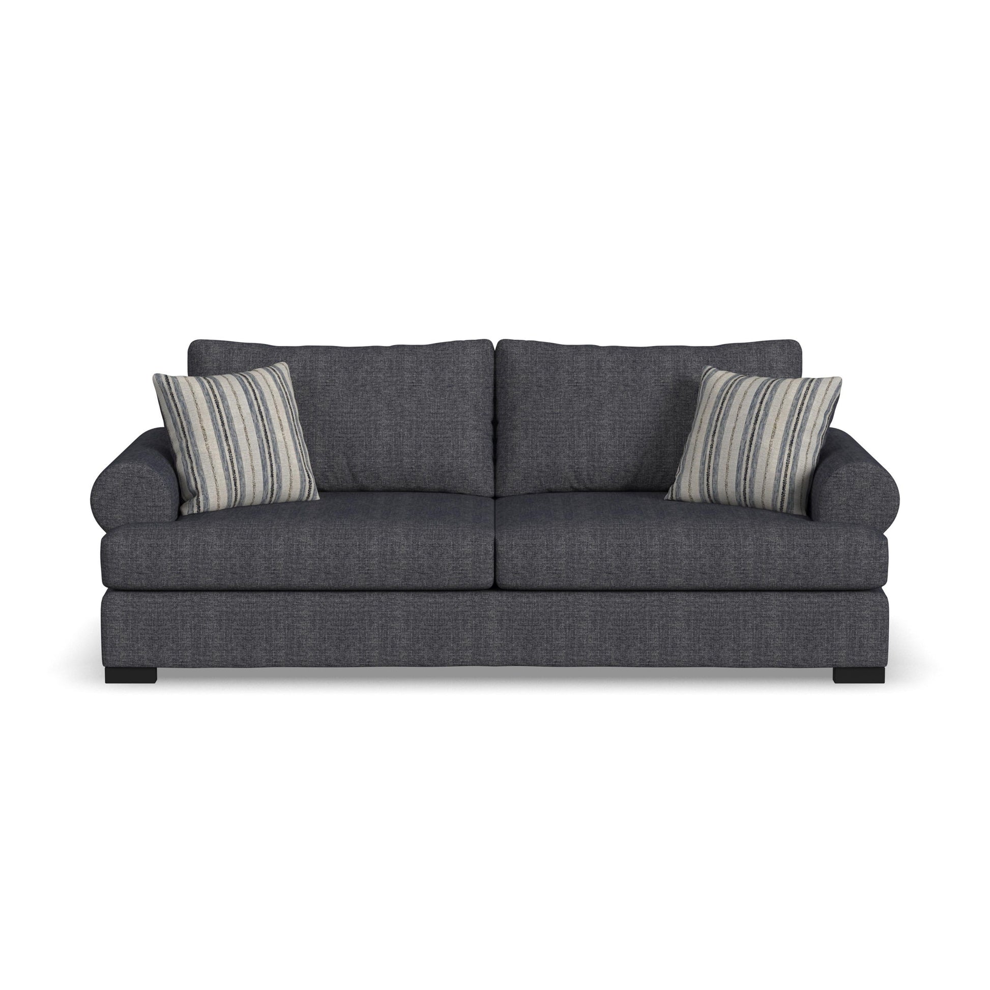 The perfect piece for adding some elegance to the home, the Florence sofa is your best friend with an old soul. Soft roll arms frame the piece for a traditional take on transitional style. Two wide, loose back cushions sit atop two wide, deep and durable T-shaped seat cushions for the ultimate casual comfort. Black recessed block legs put this piece low to the ground. Finally, choose from two carefully selected fabric combinations, and style it based on your mood with two-sided accent pillows.