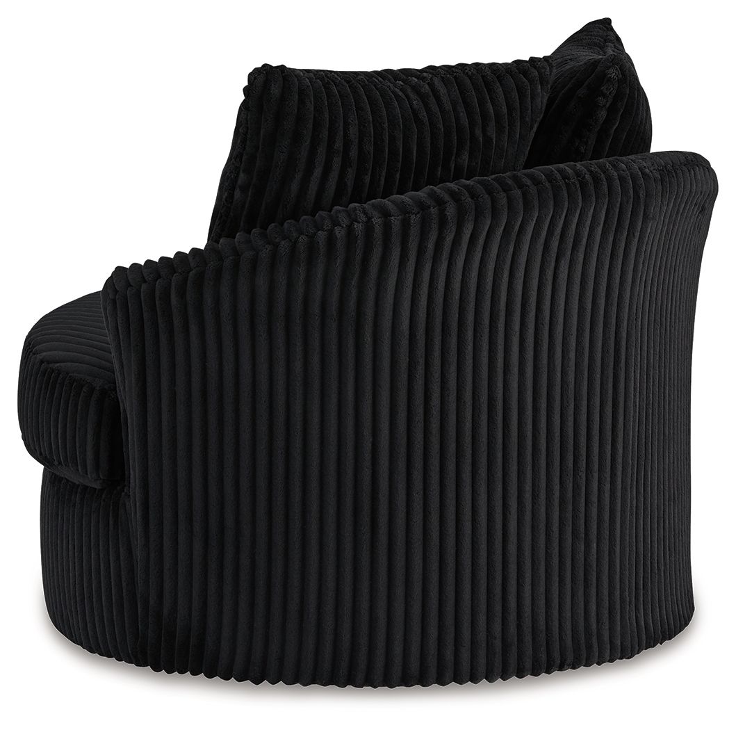 This swivel chair takes style and comfort full circle. Its plush, neutral corduroy upholstery is casually cool and beautifully on trend, while throw pillows elevate the cozy factor. A smooth-gliding 360-degree swivel lets you go with the flow. Come on, you know you want to take it for a spin.