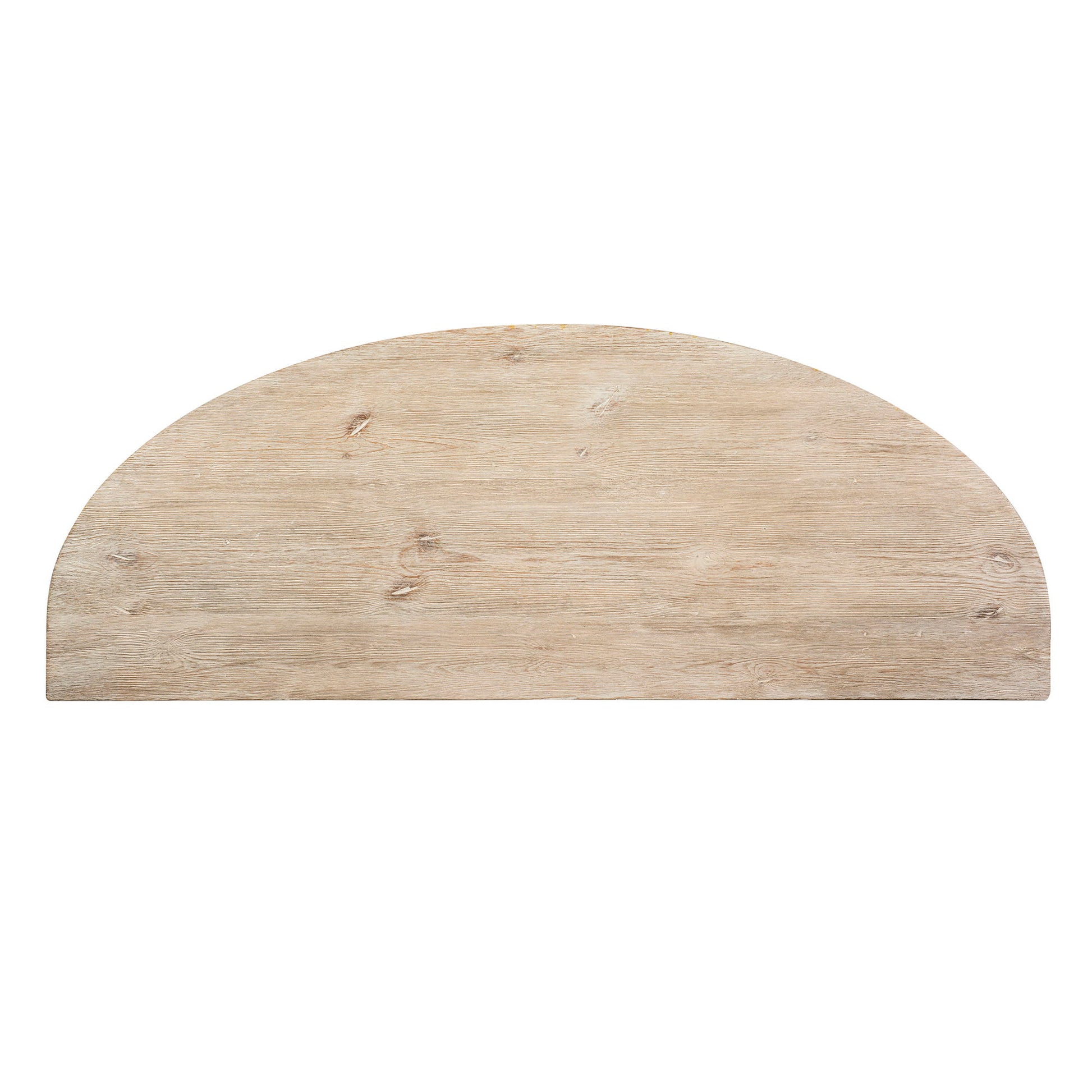 Enhance your refined space with the Greystone Mill demilune sofa table. Crafted of pine solids and knotty New Zealand pine veneers, this piece features a stone whitewash finish with wire brush detail and a flat pedestal base anchored by cabriole legs. This casual yet refined piece will be a great addition for any traditional space thanks to its appealing traditional silhouette.