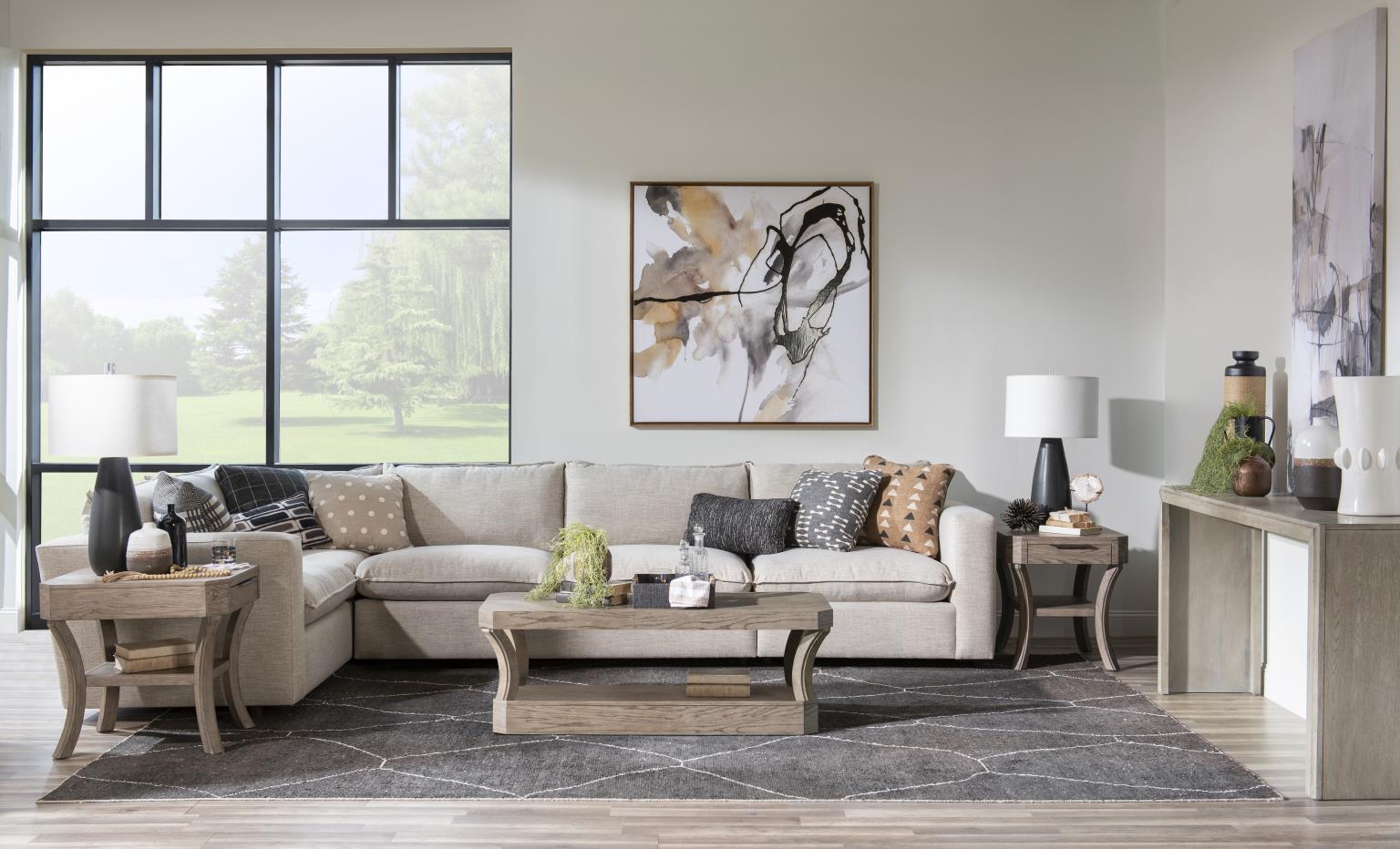 Inspired by aged and exposed elements,, the Halifax collection offers modern rustic styled pieces with a relaxed feel. The dark Java finish contrasts beautifully with the lighter Flax finish. The tones match those of rugged and earthy hues found in nature. Clean shapes and simple lines mixed with classic furniture forms adds a unique spin on this total home collection.