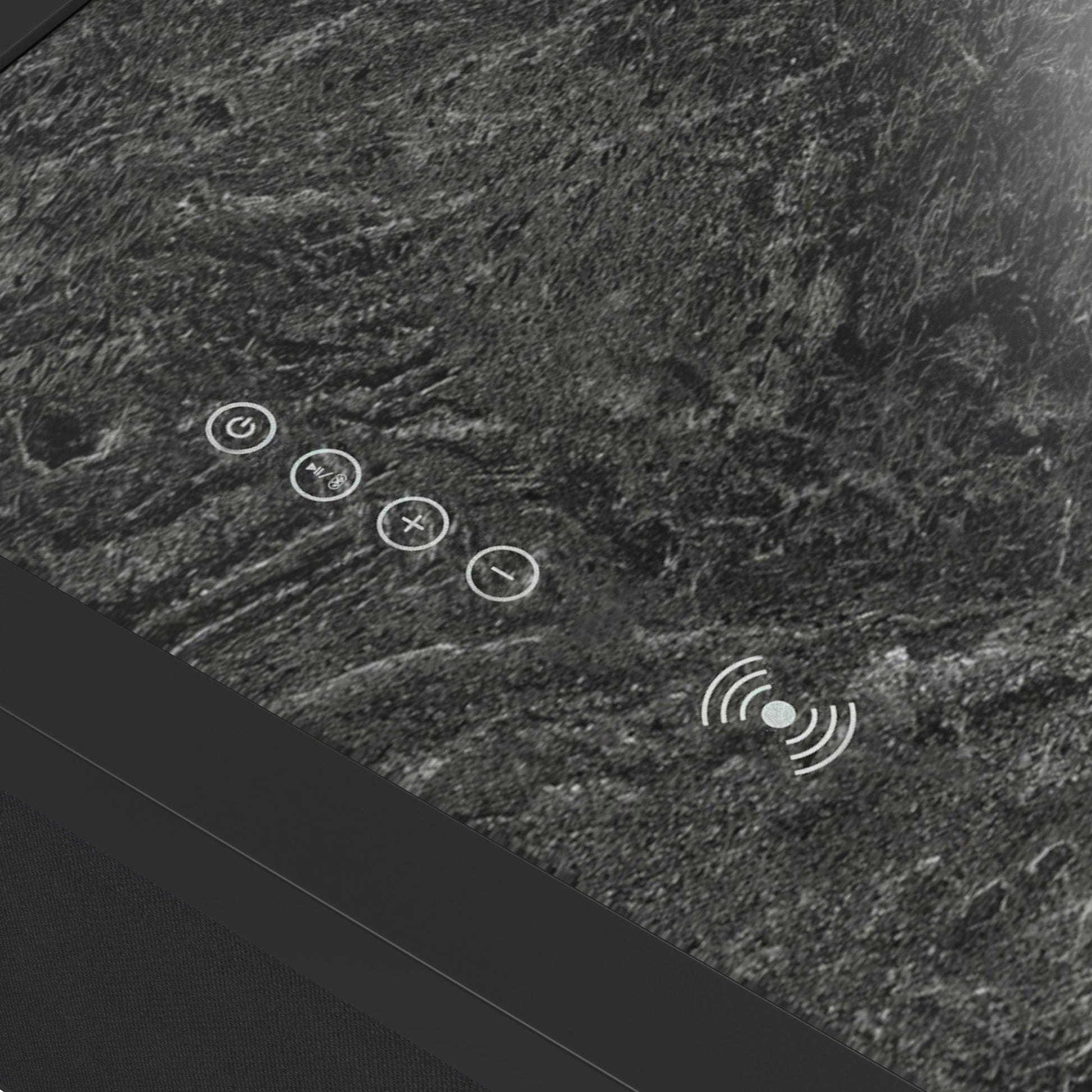 Accent your home's décor with the modern design of the Halo Smart C-Table, a sleek expression of style. The touchscreen interface and wireless charging functionality on the elegant sintered stone tabletop add practical convenience without sacrificing aesthetics, while the Bluetooth speaker allows for effortless device pairing. The open shelf extends staging area, allowing you to display your favorite decorative pieces. Enhancing its versatility, the streamlined black finish makes this piece easy to pair with various color palettes and existing décor. The Halo Smart C-Table is a perfectly modern blend of both style and convenience.