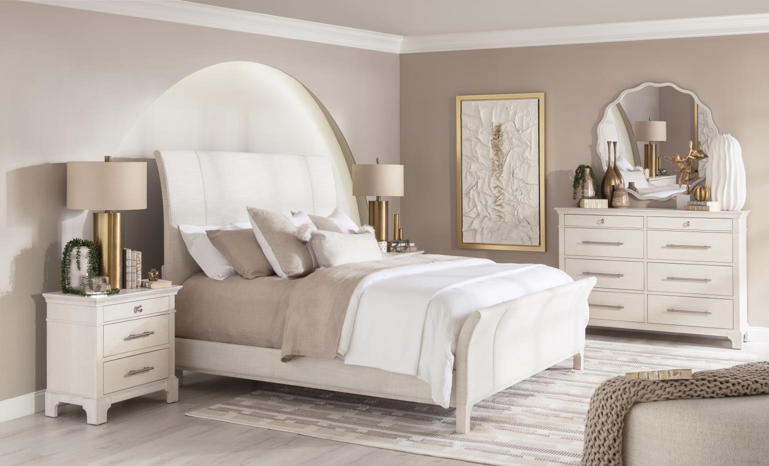Meet the Harmony whole home collection by Trisha Yearwood. Designed with graceful curves and thoughtful details,, this collection brings a soft,, modern edge to your everyday living. Crafted of Quartered Ash veneer and Select Hardwood Solids,, the fresh Prelude Frost finish delivers a refined look that's cool,, calming,, and effortlessly elegant.