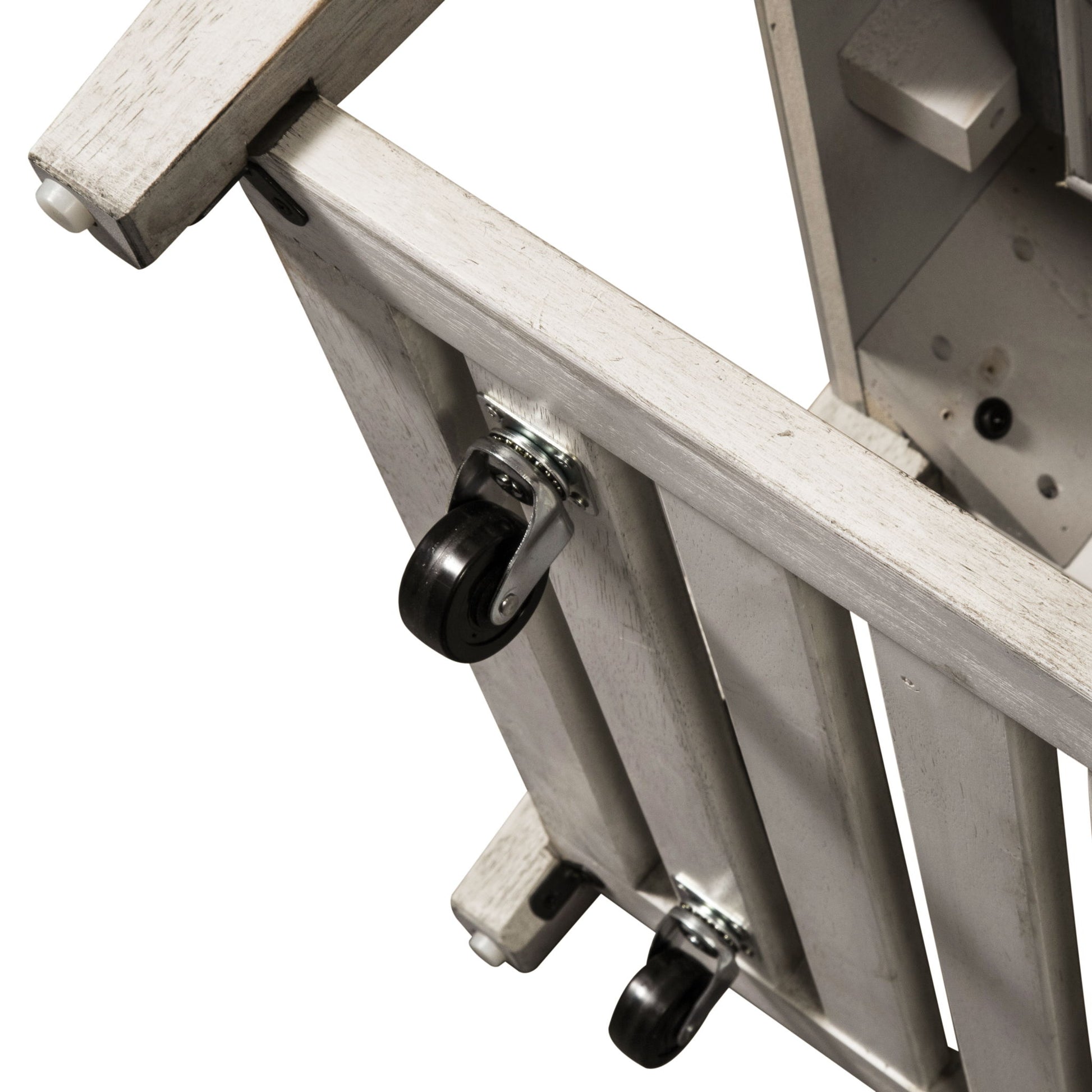Enhance your space with the Heartland rectangular ceiling tile cocktail table. Crafted of rubberwood solids with cathedral white oak veneers, this piece features an antique white finish with a tobacco top outlining two decorative tiles covered by glass, wood framed door fronts, accented with antique brass knob hardware, two full extension fully stained interior drawers and a slat bottom shelf for additional storage, anchored by square tapered legs with casters. This classic cocktail table would make a great addition to any traditional space.