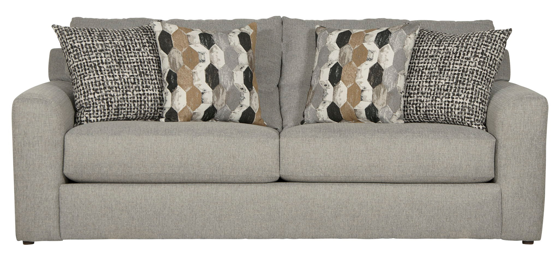 Transitional styling at it's best! The Hooten collection boasts multi-color, textured body fabric coordinated beautifully with geometric accent pillows. While style was top priority for the Hooten collection, comfort is always our first priority. The Hooten is designed to be bigger and deeper. The kind of piece you can curl up in. The seating is constructed with 50+ individually pocketed coils encased in foam, topped with a layer of cool gel infused memory foam and wrapped in a layer of synthetic fiber. This creates a comfortable and supportive seat that will last much longer than traditional foam only seating. The frame is constructed with Steel-Tech framing which adds support to the framing structure and keeps the high tension sinuous springs that support the seat cushions from warping or pulling free from the frame.