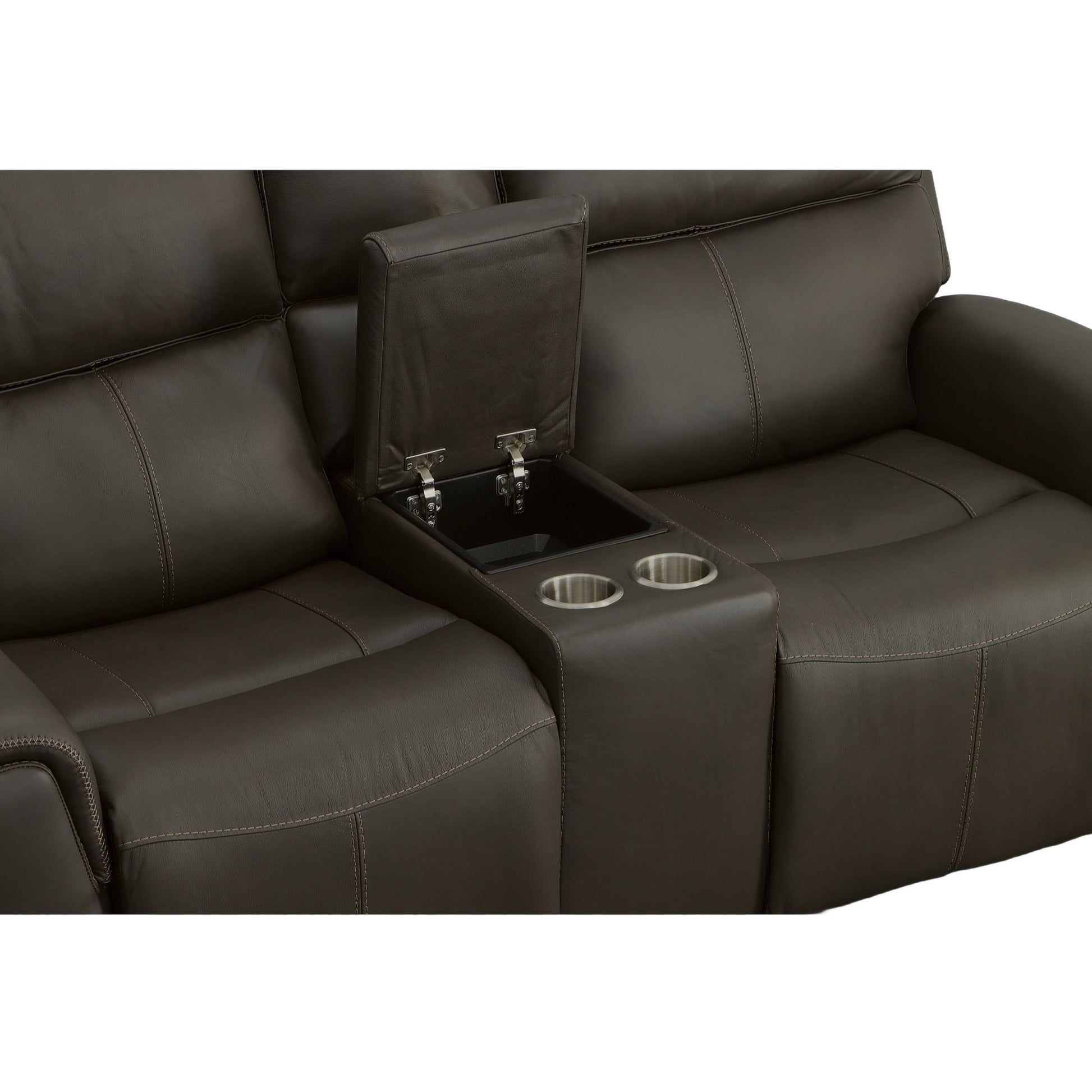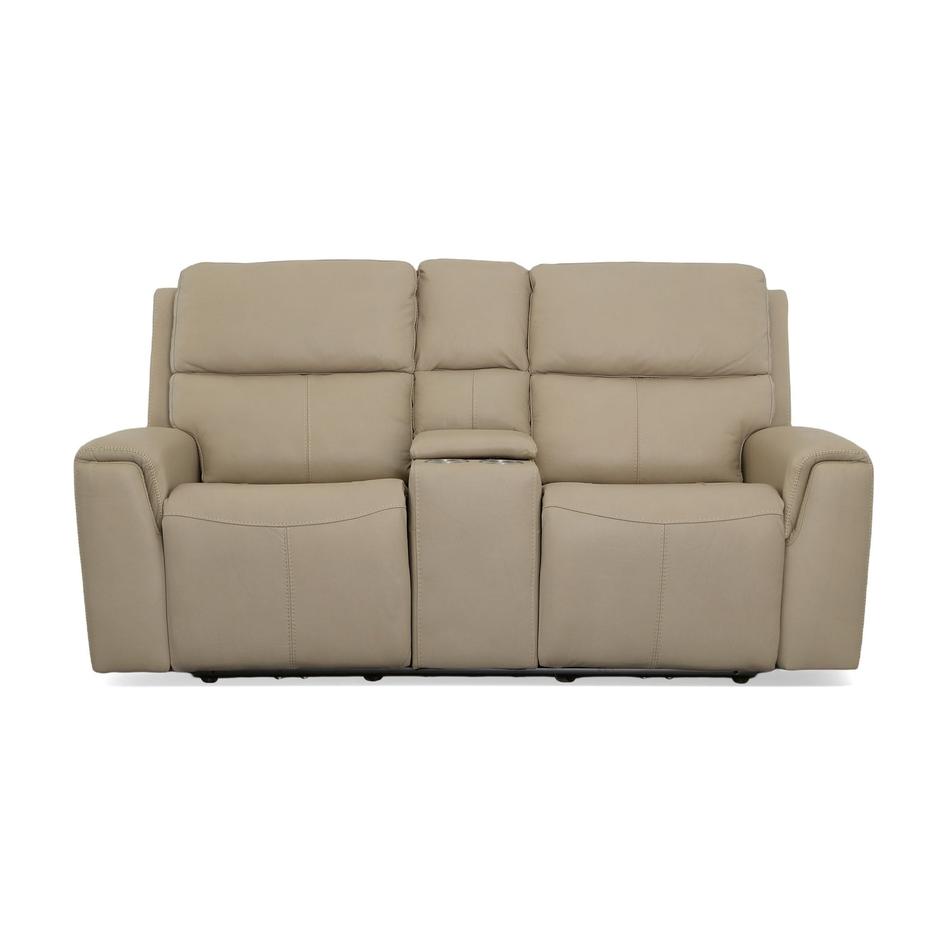 Keep your snacks, beverages, and remotes right where you need them—and stay comfortable as you tune in (or tune out!)—with the Jarvis leather power reclining loveseat with console and power headrests. Zero Gravity recline technology gives you a feeling of weightlessness, while Flexsteel's patented Blue Steel Spring™ ensures the loveseat offers you an optimal range of motion. When you’re ready to kick back and relax, use the power controls with built-in USB ports on either side of the loveseat to independently adjust the headrest and recline. And you don’t have to sacrifice style to get all this convenience and comfort. The Jarvis loveseat offers a contemporary look with clean lines, sleek pad-over arms and decorative cross-stitching.
