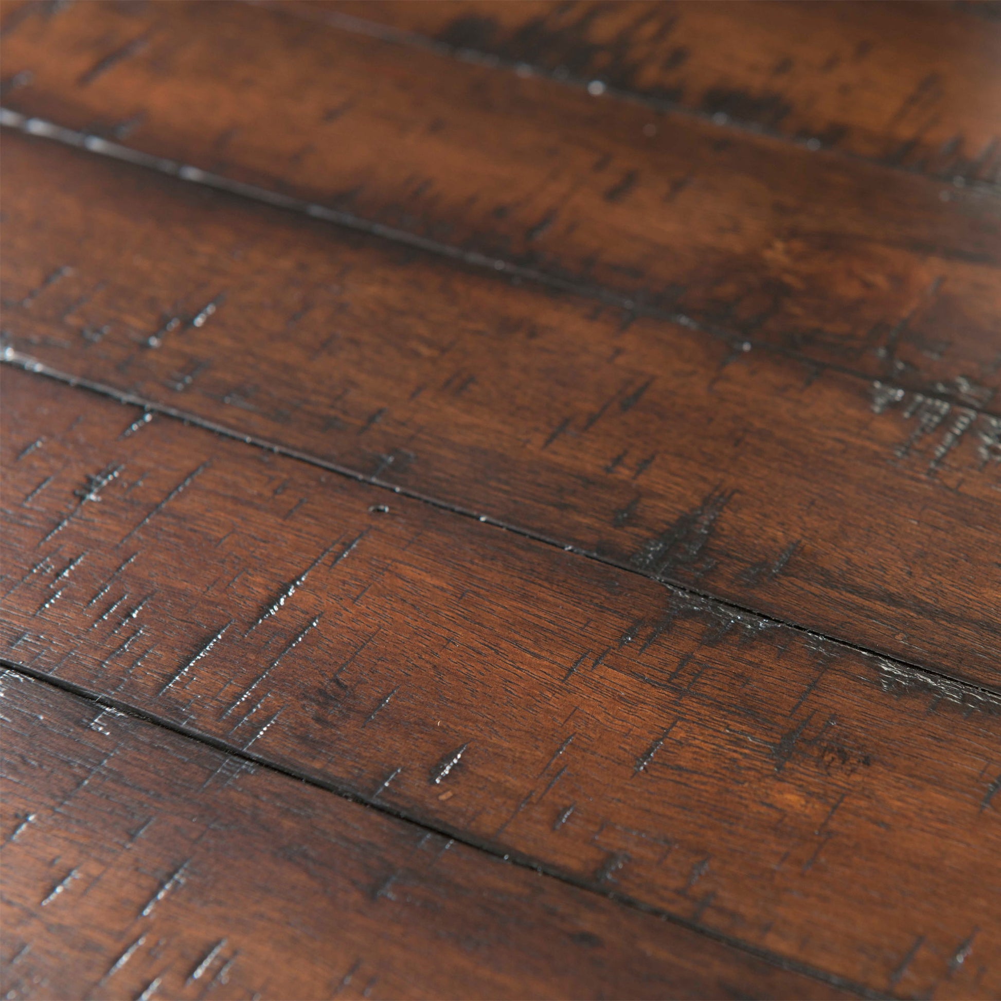 The Jax End Table will take your living room to the next level! This square end table comes in a rustic, cherry finish and features distressed markings throughout. Open the drawer to find extra storage space to store away remotes so you never lose them again. The bronze drawer pull pairs perfectly with the rustic cherry finish. The bottom shelf can be used as an extra space for storage or to display your decor. Straight legs complete the look of this transitional end table.
