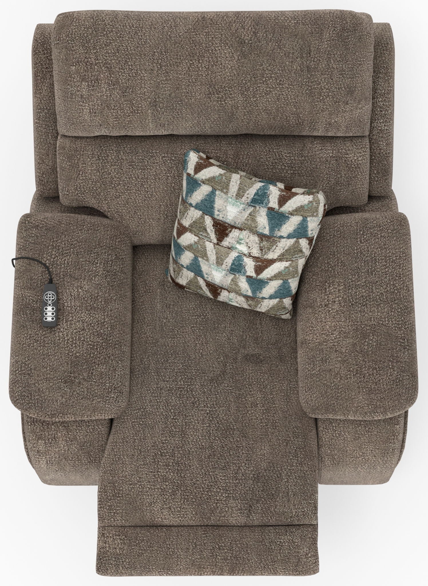 Joya - Power Headrest Power LayFlat Recliner With CR3 Heat/Massage/Lumbar/ZG - Mushroom Product Pub-Back Pillow Arm Design Soft Chunky Polyester Fabric Zero-Gravity Power Recline Shiatsu Massage Feature Power Headrest/Power Lumbar Comfort Coil Seating featuring Comfor-Gel Steel Seat Box
