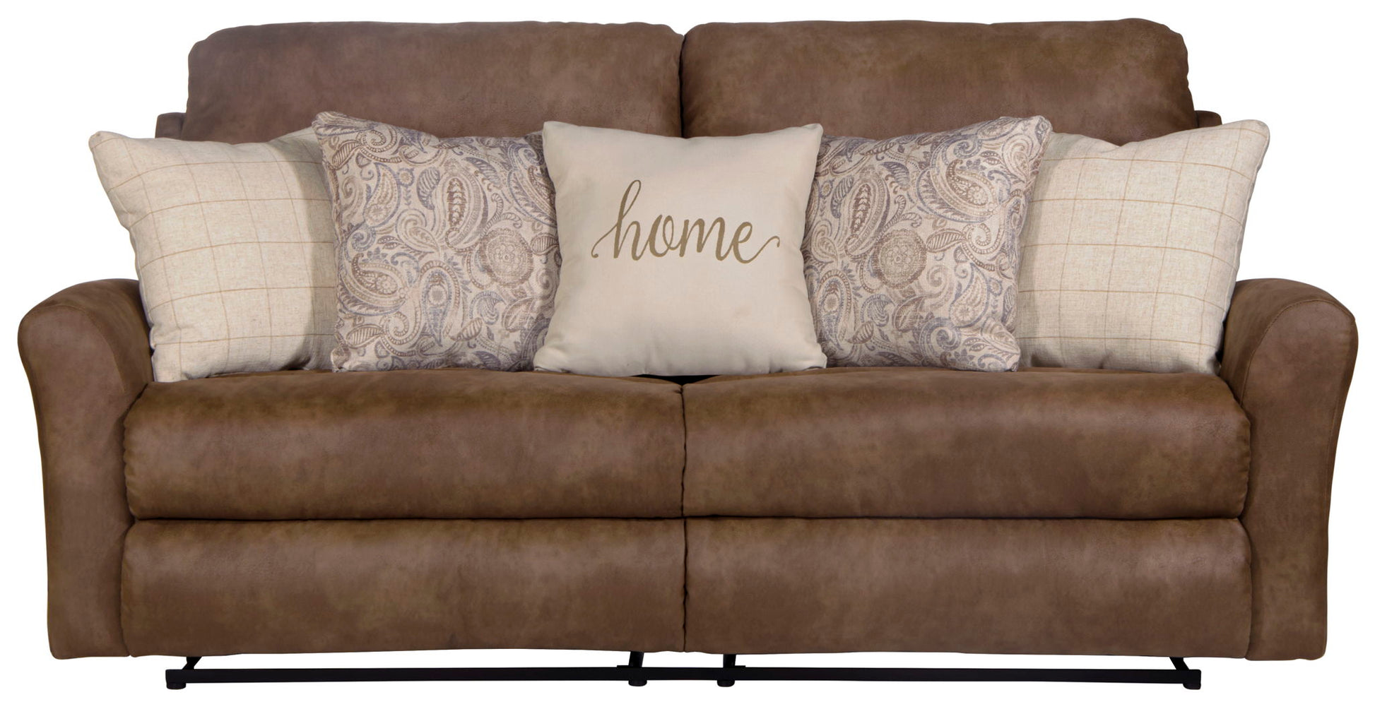 The Justine contemporary farmhouse dual reclining sofa brings cozy comfort to any room. Sometimes reclining furniture has comfort but no style but the Justine has it all! This sofa is covered in a soft polyester fabric that is durable and easy to clean. Decorator accent pillows add to the look and comfort. The seating is constructed of individually pocketed coils encased in foam and topped with a layer of cool gel infused memory foam and wrapped in a layer of fiber to create a super comfortable and consistent seating experience. The Lay Flat reclining mechanisms let you really stretch out! Proudly manufactured in the USA the Justine is designed and constructed to be bigger, deeper, and more comfortable. All steel seat boxes are used to add strength to the frame for years of worry-free use.